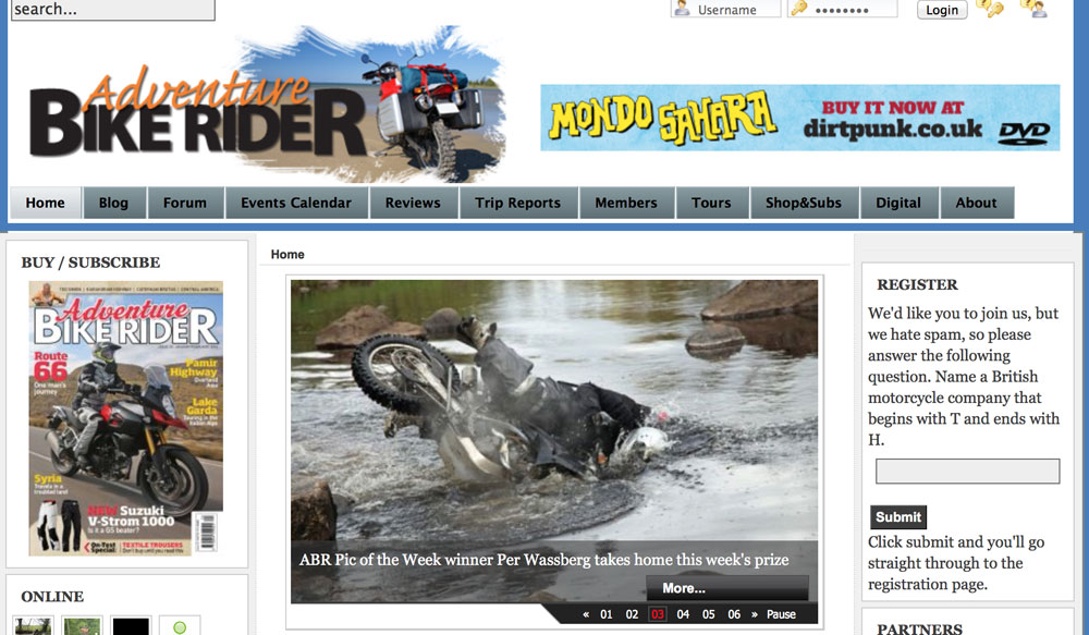 Adventure Bike Rider is a UK-based print publication with a very informative website and digital subscription for those of us on this side of the pond. One of only a handful of publications aimed squarely at the adventure segment, the content is always relevant, practical, entertaining, and informative. www.adventurebikerider.com