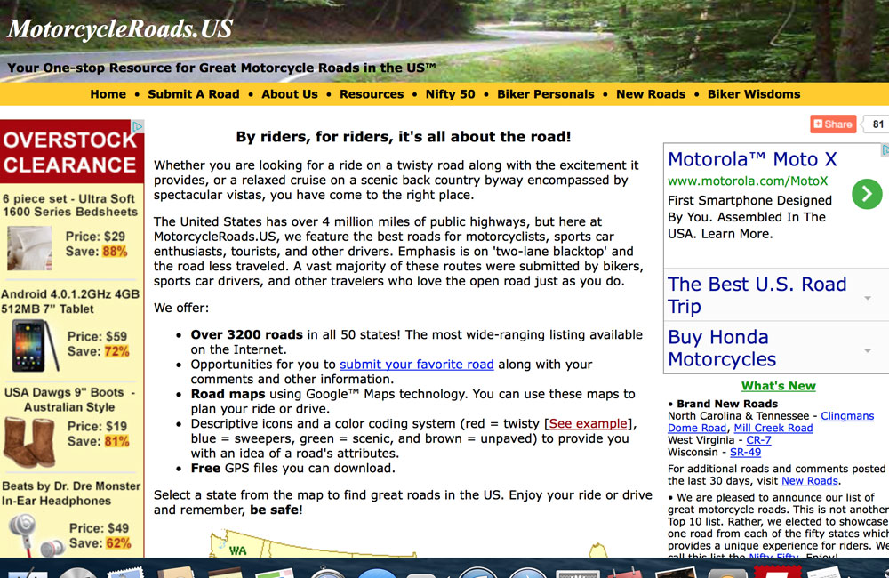 Motorcycleroads.com is not really geared towards the adventure rider, but it is a good resource for finding the connector roads many of us use to get from one off-road haunt to another. This is not to say there isn’t a nice collection of unpaved roads listed, but that assortment is modest and your ability to find good adventure routes is hit or miss depending on the region. The website is a little clumsy and hard to use, but I wouldn’t discount its resourcefulness. www.motorcycleroads.com