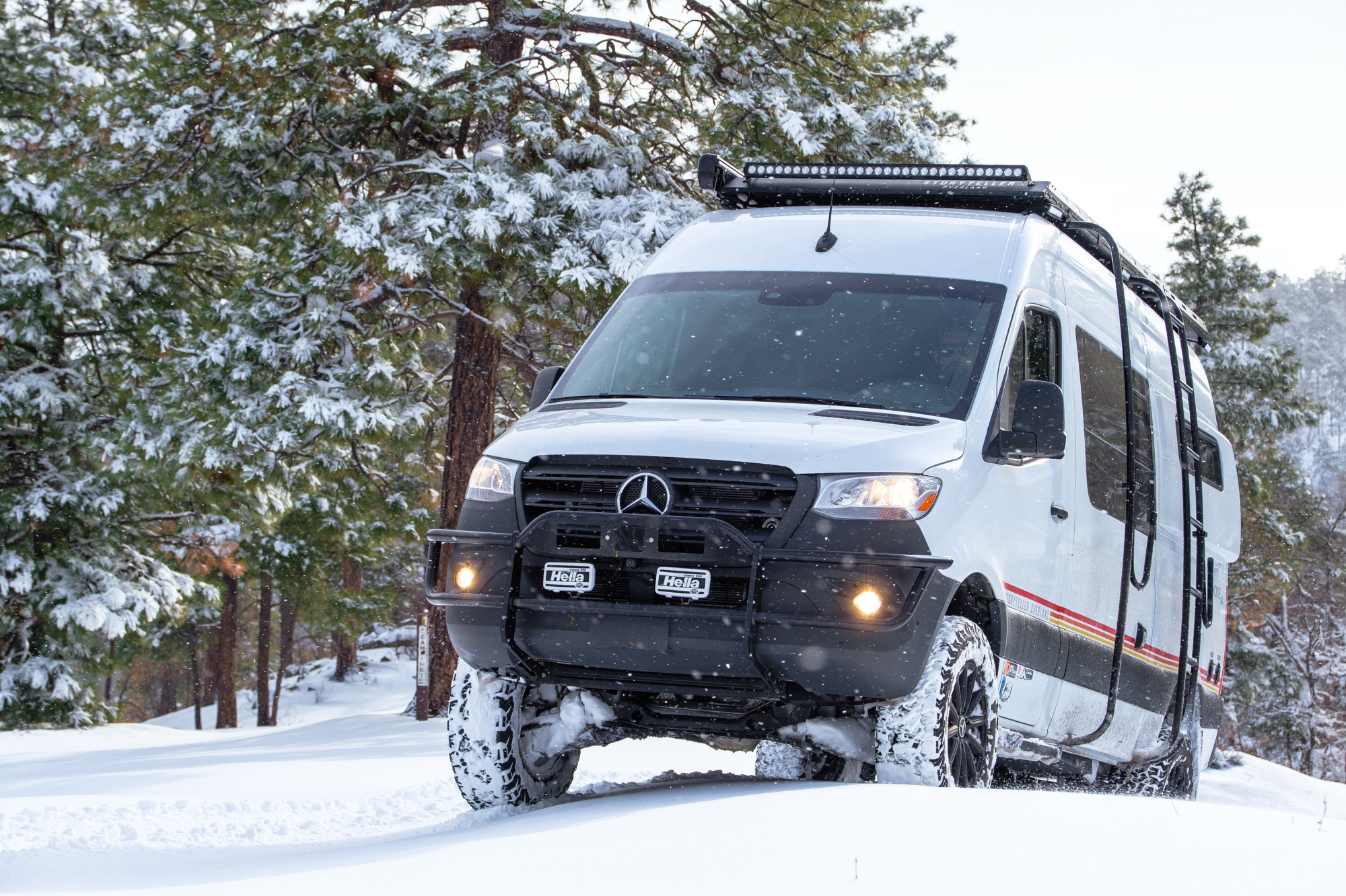 It seems like everyone wants to know about the off-road capability of the Sprinter, so let’s just get that out of the way now. While companies are managing to stuff 35-inch tires under these vans, it’s important to know that they are not meant to be trail rigs. They are travel vehicles, designed with that purpose in mind, not rock crawling. Still, on 99 percent of what we would need to drive on as overlanders, a Mode 4×4 will tackle with ease. That’s because Storyteller understands what’s important on an off-road van. They kept the undercarriage clean and free of low hanging pipes and tanks, the approach and departure angles weren’t ruined with cheesy bolt-on fascias, and they installed proper all-terrain tires instead of thin-walled all-season ones. Thanks to these wise decisions, soft sand, deep snow, mud, and yes, even some technical terrain are all within the capabilities of the Mode 4×4.