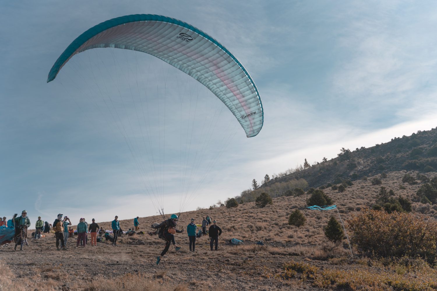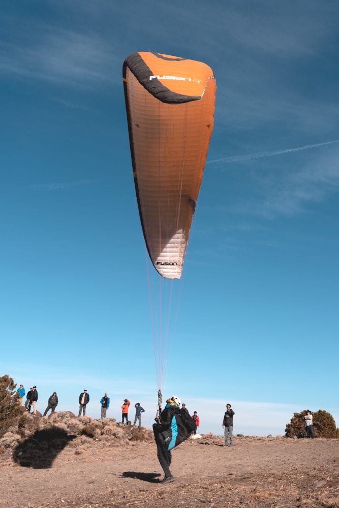 Many factors must be assessed: wind speed, wind direction, thermal strength, and, of course, the forecast for the day. If we decide it’s safe to fly, we take our places, lean into the wind, and inflate our wings.