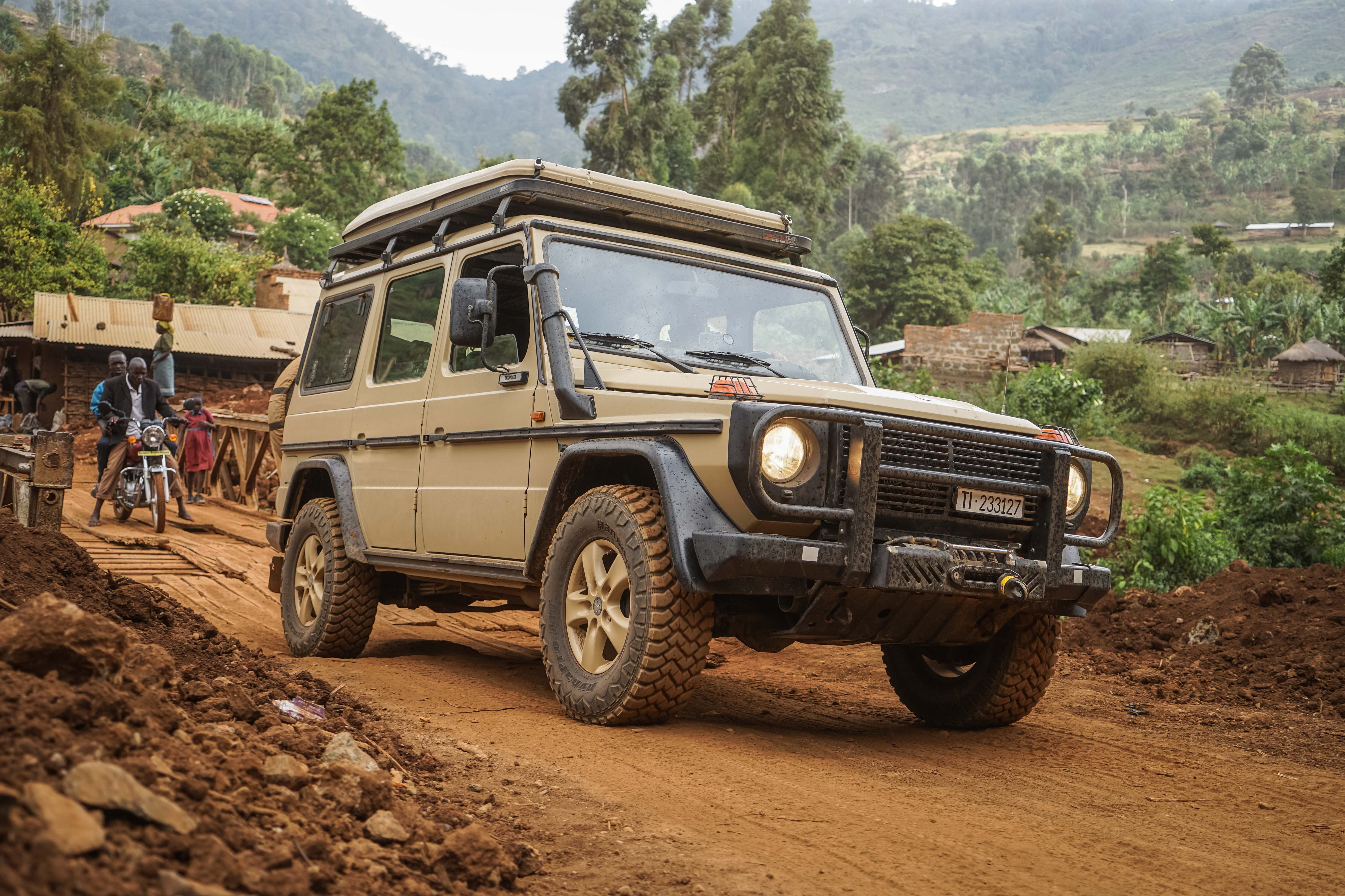 The Entdecker G-Wagen is one of the most exceptional vehicle builds ever produced, a partnership between Unicat and Front Runner using the G-Class Professional model. The roof tent is carbon fiber and the rack aluminum, keeping the roof load below factory limits. The vehicle is stock height and uses modest tires. We have driven this SUV in several African countries, including Kenya and Uganda, and never suffered a failure with the modifications.