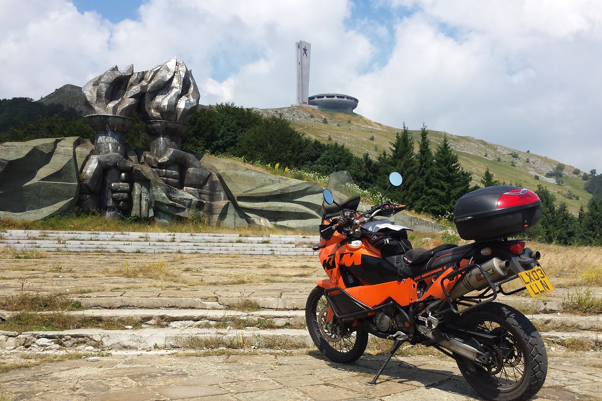 At 3 p.m. the temperature tops out at 39°C. There are benches of pensioners. Old men with big bellies and no distinguishing features sit in the shade; younger men pour out of the bars, working on growing their stomachs. But they always wave—well, not always. Some of them wave, I’ve definitely had some waves, I can categorically state that I’ve not been totally blanked. God, I’m hot…I think I’m delirious…flash a passport, over the bridge, goodbye Danube, hello Bulgaria, time for some serious helmet whooping. I’m hot beyond hot, I want a shower more than I want a beer. The roads are bad, the traffic scarce, the brutal Soviet-style architecture as hard to comprehend as the Cyrillic alphabet. I’m so forgiving, in love with it all—long may it last.