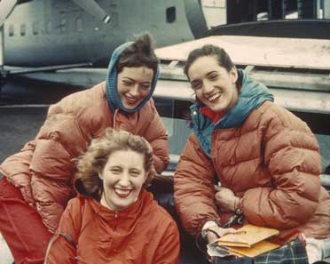 Deacock, also an experienced rock climber, was born in Johannesburg and worked as an architectural assistant in London. Davies was the only one of the group with children—three sons aged 5, 14, and 15. As to how she felt leaving her children for five months, Davies said, “I felt weepy sometimes, but I didn’t feel guilty, because Lester had gone off on expeditions, and this was my turn.”