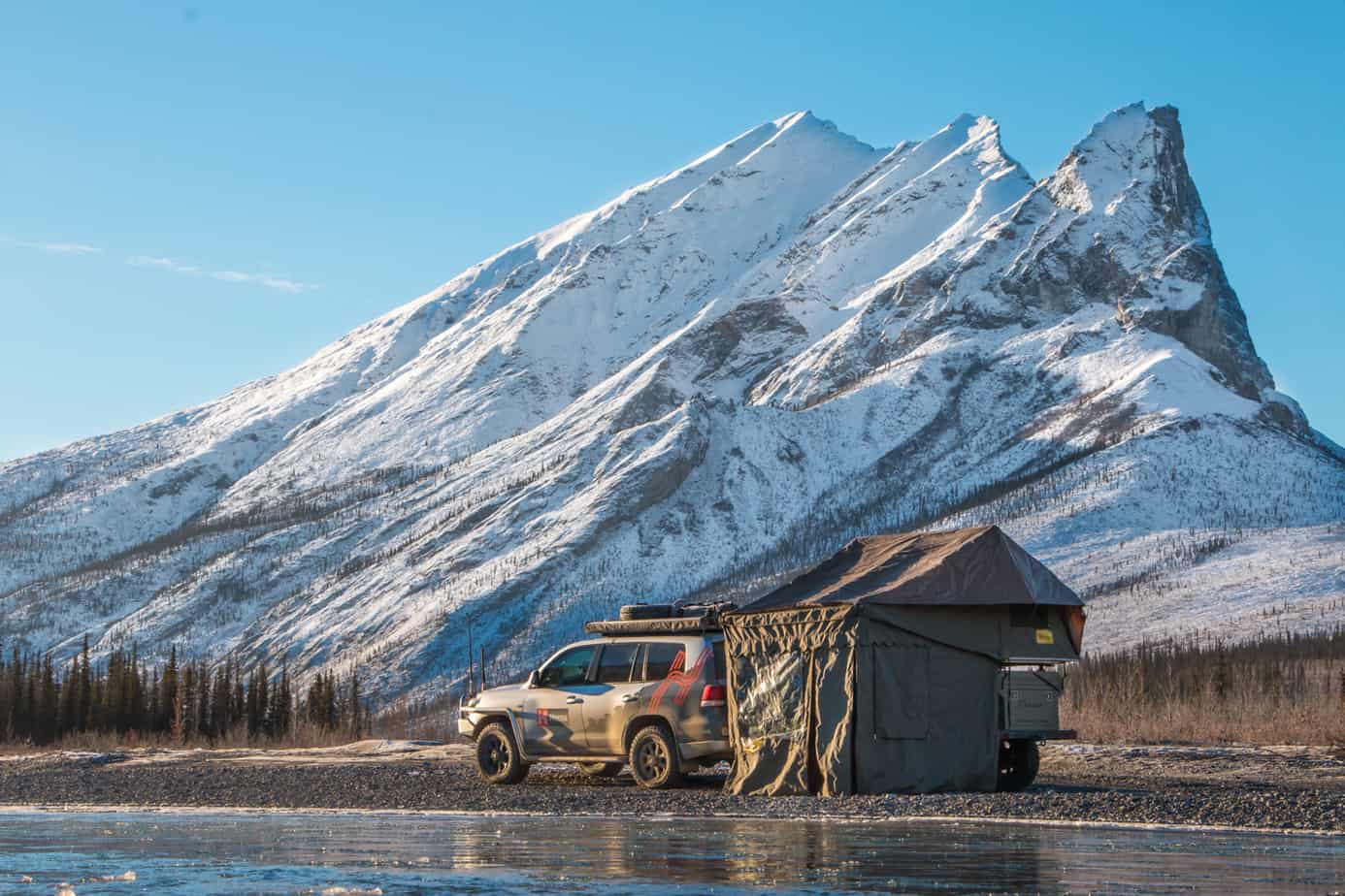 Avoid sleeping in the snow and mud this winter with a Columbus Variant roof-top tent from Autohome. This aerodynamic fiberglass abode takes 20 seconds to open and about a minute to stow. Screened windows on three sides offer exceptional ventilation, it features a comfortable mattress and pillows, interior LED lighting, and is weather tight in the worst of conditions. To learn more, visit their website here.