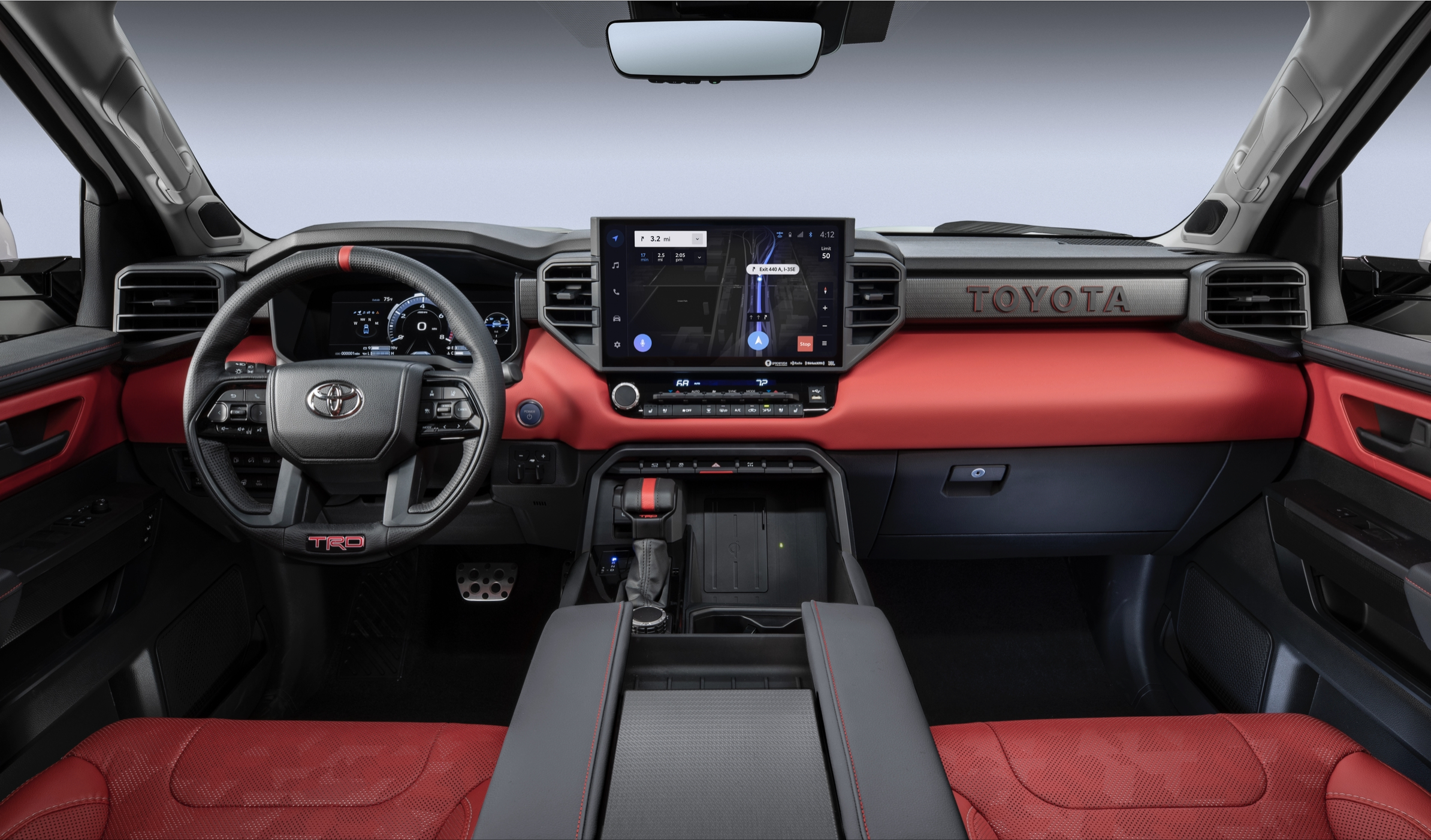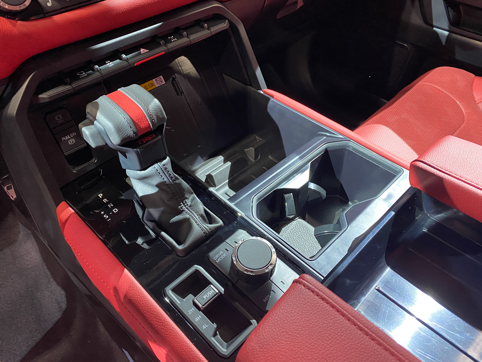 The interior is also modern but equally refined. The red TRD Pro is too much for my taste, but the other model interiors are thoughtful and handsome. The screen size is massive at 12.3 inches, and it works well with Gaia and OnX for navigation. The rear locker switch is easy to access, as is the terrain select dial and tow/haul selector.