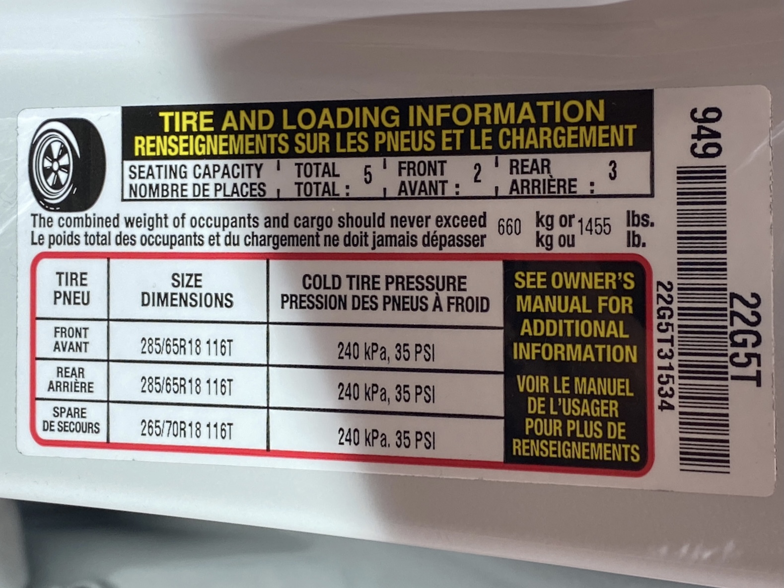Editor’s Note: We have received a specification update from Toyota indicating that the payload of the TRD PRO variant will be 1,600 pounds, not the 1455 indicated on the door sticker shown below. This is exciting news, seeing this significant increase in the available capacity of such a capable model.