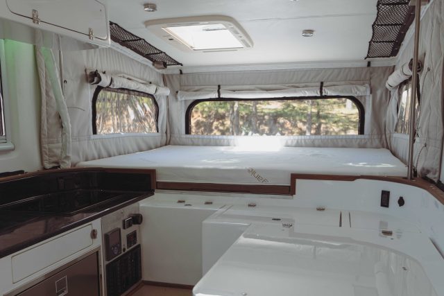 The aluminum alloy used in the flatbed construction is robust, lightweight, and has excellent corrosion resistance. The aluminum used is one of the most common and accessible and is great for structural applications, and the combination of carbon fiber and aluminum will ensure a camper that will likely outlast a few base vehicles.