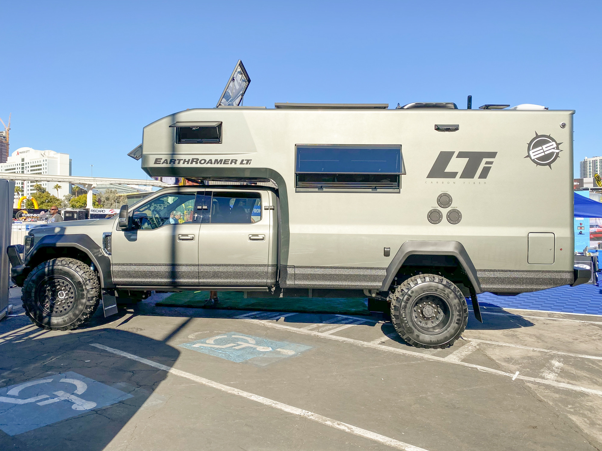 EarthRoamer had their all-new LTi camper on display at the show, complete with a composite body and all-new interior treatments and electronics. The Kelderman suspension allows the fitment of 41-inch Continental tires on Hutchinson beadlock wheels. While it is easy to dismiss these vehicles as luxury land yachts, we have driven one all the way down to Panama. earthroamer.com