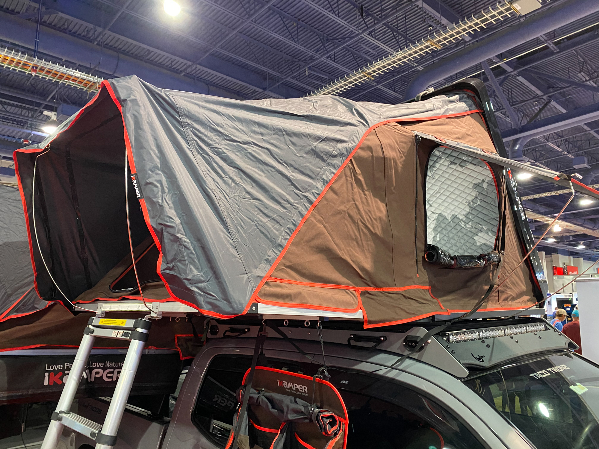 One of the more innovative tents at the show was the new iKamper Skycamp Mini, which easily fits over a 5-foot truck bed or over the cab of a compact truck. It sets up in a minute and the smaller size also provides a lighter weight at 125 pounds, under most SUV roof load limits. ikamper.com