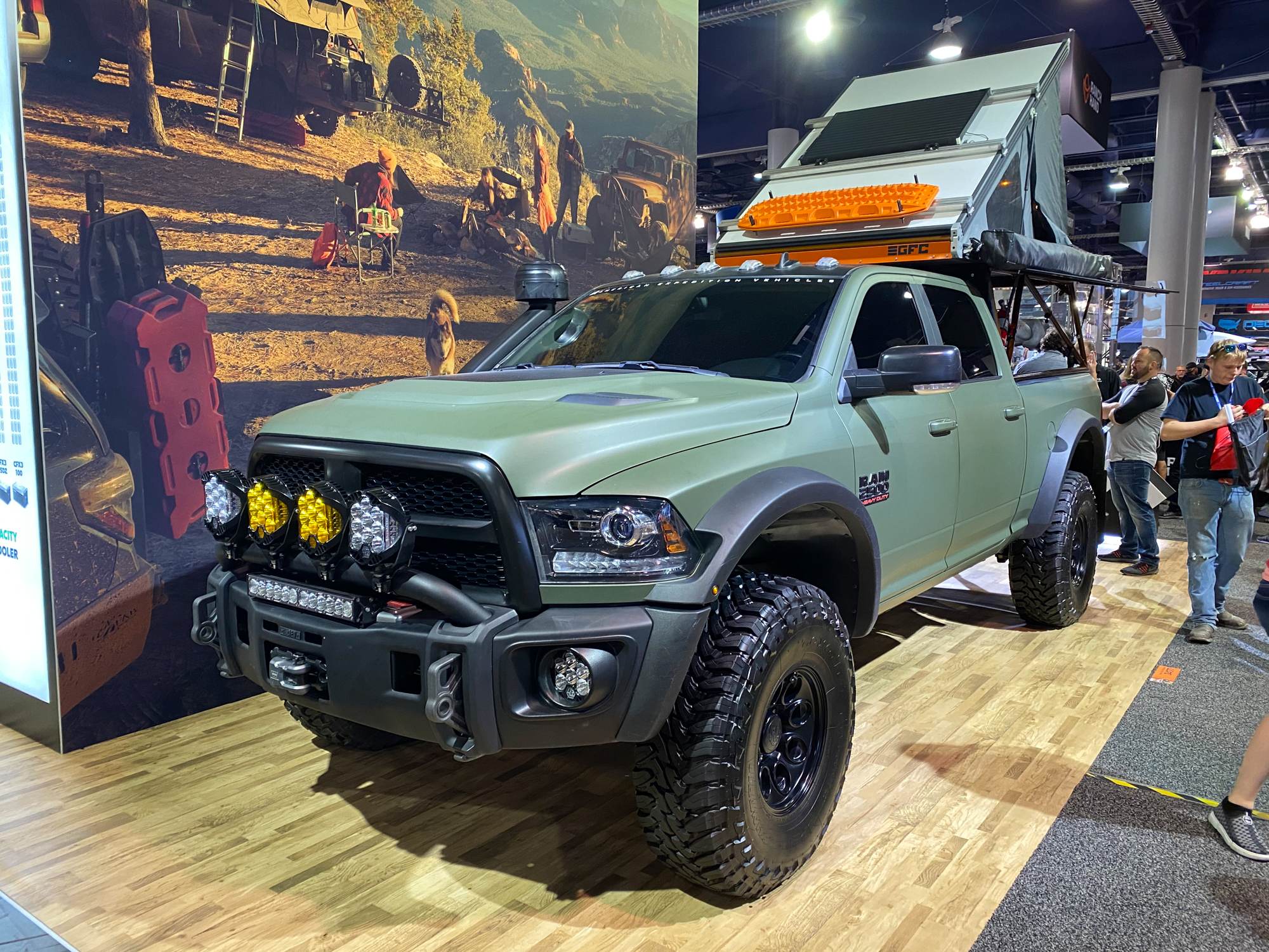 The Dometic booth has always featured interesting project vehicles, and the Fotornr Ram was a great choice. This particular project has excellent attention to detail and high-quality components from AEV, Baja Designs, and Go Fast Campers. Check out Fotornr on Instagram