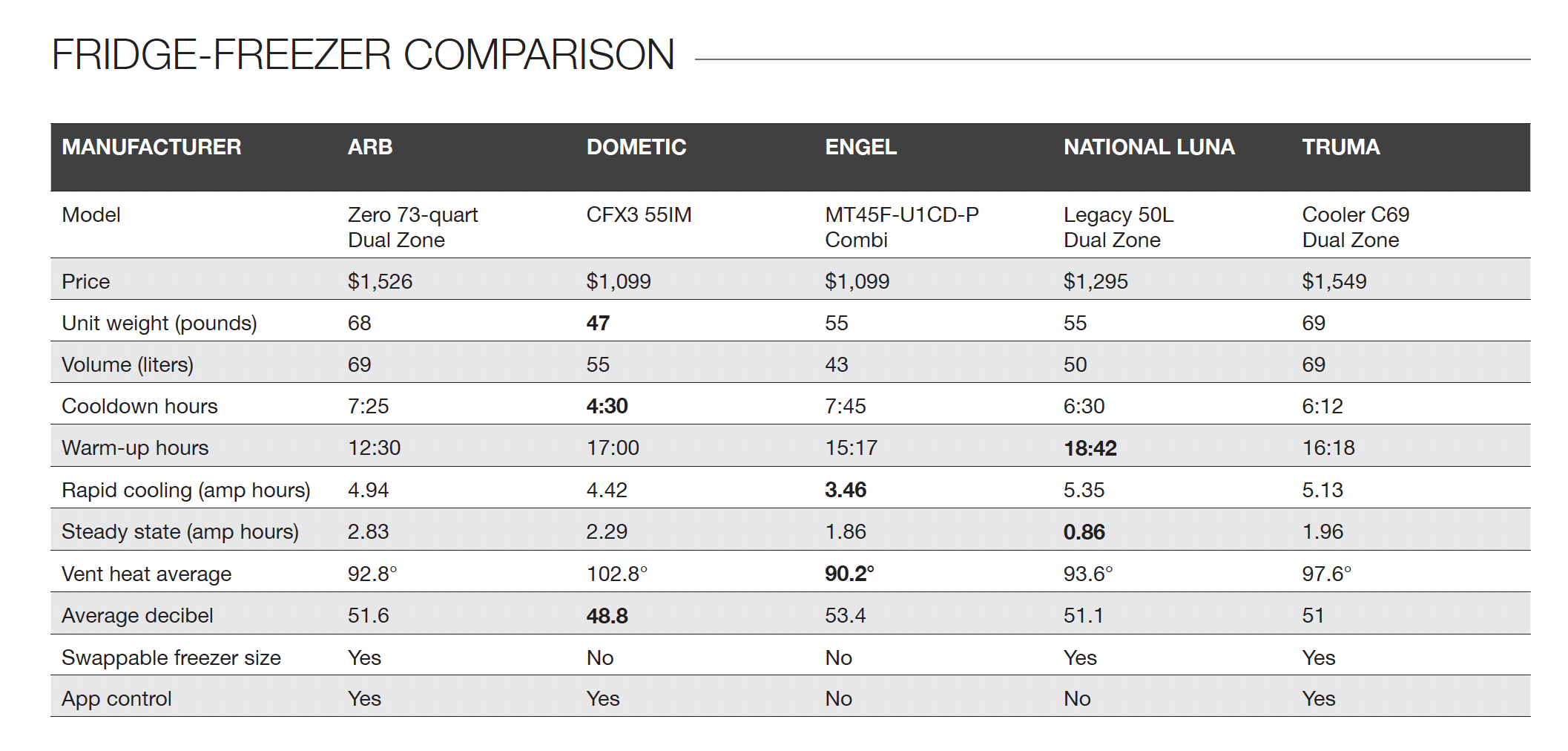 have been made in Africa for over 30 years, and won the previous two Overland Journal fridge-freezer tests. They have a wide range of options to suit the needs of the traveler, including models with over 70-millimeter-thick walls filled with premium injected insulation. More recently, they introduced a new Legacy line of fridges that found the optimal confluence of performance, material quality, and value.
