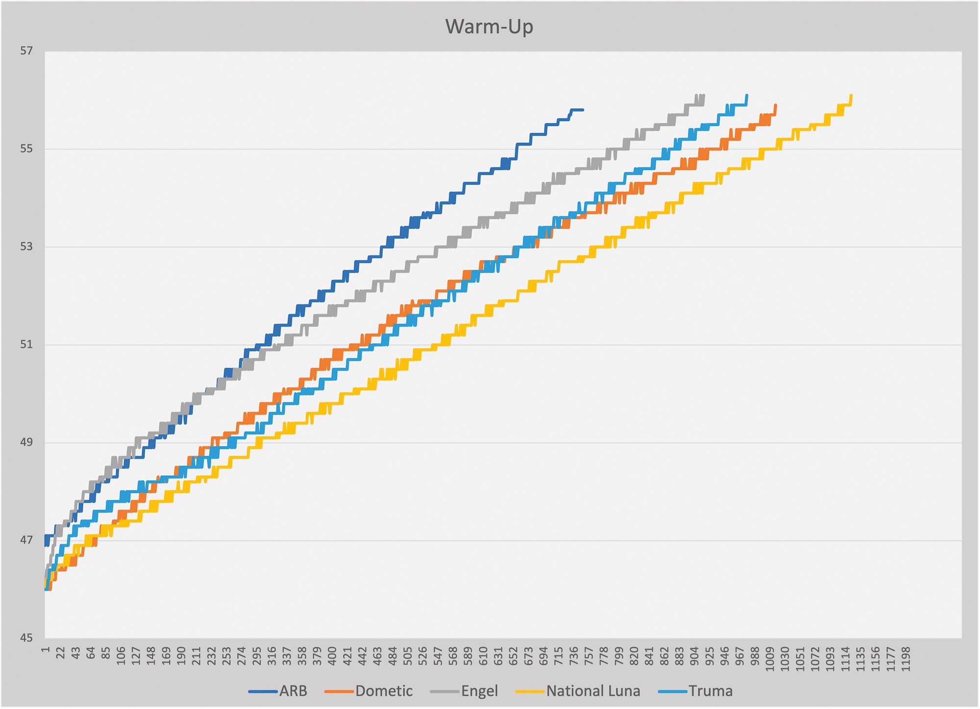 In use, the weight and size of the ARB are immediately noticeable and will require the right application to fit properly. The performance of the fridge is below average, with faster cooling initially, followed by slower performance as the temperature closes in on the benchmark of 46°F. Interestingly, the resolution of the data logger showed a less than optimal cooling profile, with the controller idling the compressor for short periods despite it being set to maximize cooling. The warm-up was also below average, with the ARB warming 10° faster than any other unit in the test (albeit similar to the Truma as expected). The volume of the fridge is a serious benefit; and the larger volume, when compared with others in the test, will have an impact on cooling and warming efficiencies.