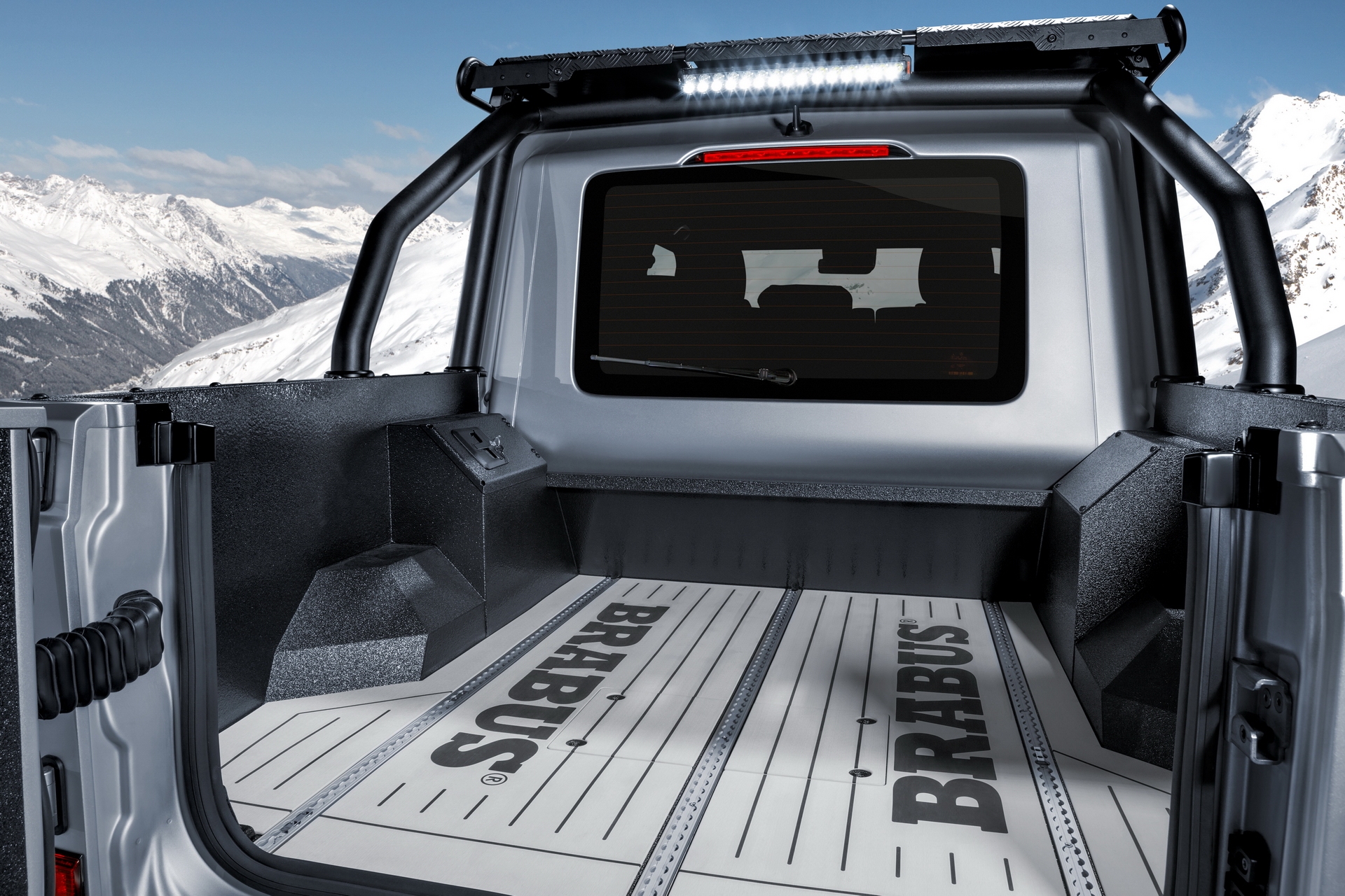 Speaking of carbon, Brabus used a lot of it. In addition to the bed and the fender flares, they used it in the hood, wheel arches, rub strips, and front skid plate. There’s so much carbon, in fact, that Brabus doesn’t even bother listing it all. They simply end the list with “among other things.” Other standard features include an unbelievable interior with customer-specced leather colors and patterns, and tailor-made aluminum pedals, door-lock pins, and ergonomic paddle shifters on the steering wheel. Moving to the exterior and engine bay, owners will receive a WideStar body on their G for a 4.6-inch wider stance, upgraded turbos, a remapped motor, new exhaust, and so many other performance upgrades that this portal-axled beast will do 0-60 in 4.8 seconds. The only thing you don’t get standard? A winch—you wouldn’t want that weighing down your supercar, right?