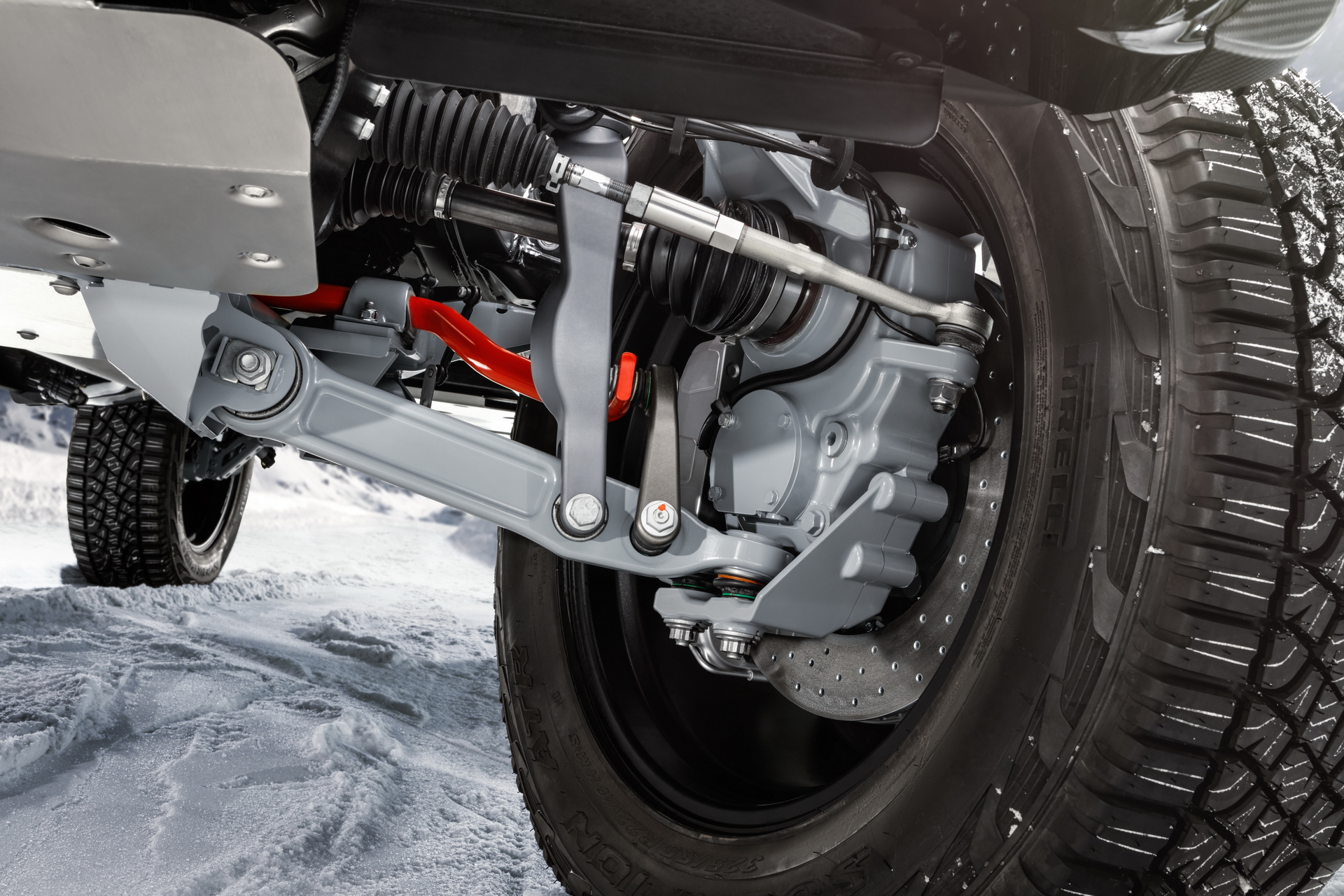 Also included in the suspension redesign is a switch to the new Brabus Monoblock HD wheels, which were designed with an eight-lug pattern specifically for the portal axles. These alloys are designed for maximum durability and wrapped in 325/55 R 22 Pirelli Scorpion ATR all-terrain tires beneath the carbon fender flares.