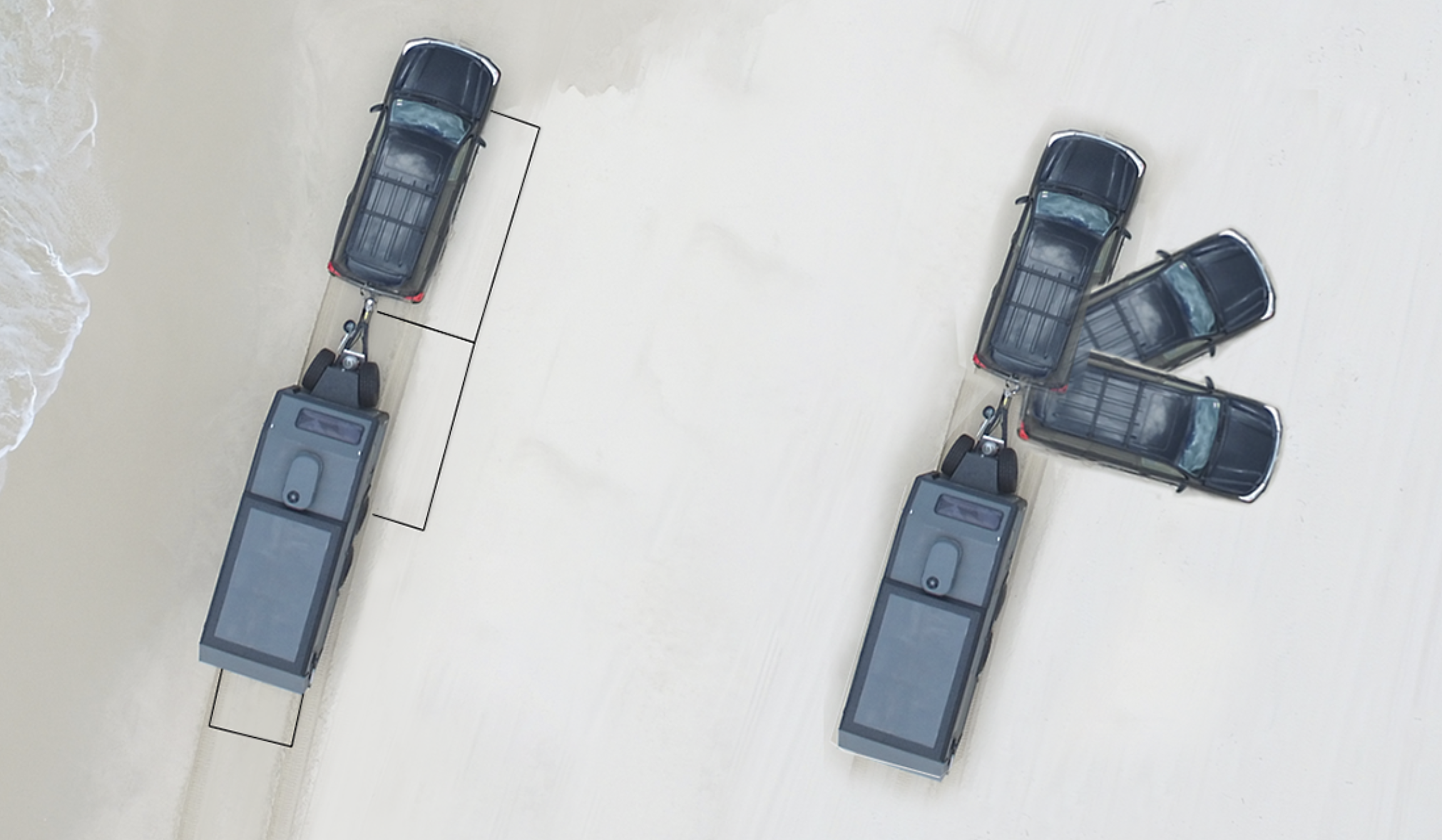 Everything I knew about towing a trailer told me we were screwed. The ledge was too tall to roll over, our speed was too high to swerve, and our angle of approach was a perfect offset to flip the trailer. Even if we miraculously managed to stay upright over the jump, the dip and mud pit on the other side would surely finish the job. I had only a split second to look at Dan, the driver, and mutter an expletive before his 200-Series Land Cruiser struck the edge. The vehicle launched into the air with a shudder, throwing my stomach up into my throat; I found my gaze pinned to the trailer in the rearview. Half a moment later, the Brüder’s front left tire struck, and I held my breath—this was it. I waited for the impending pitch and subsequent roll of the EXP-6, but to my utter disbelief, it never came. The body of the trailer flowed over the ledge, through the ditch, and across the mud pit as if it were on a freshly graded dirt road. I started breathing again and looked at Dan, who moments before I was sure would kill us. He laughed and quipped, “Like I said, you just have to experience it.” I could now see what he meant.