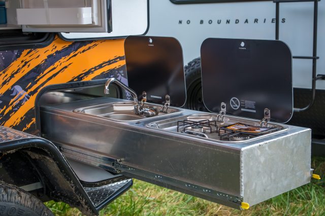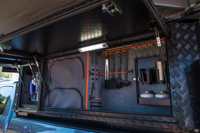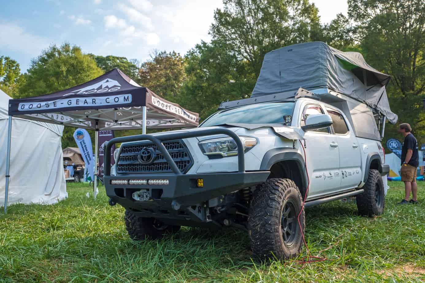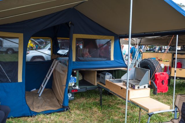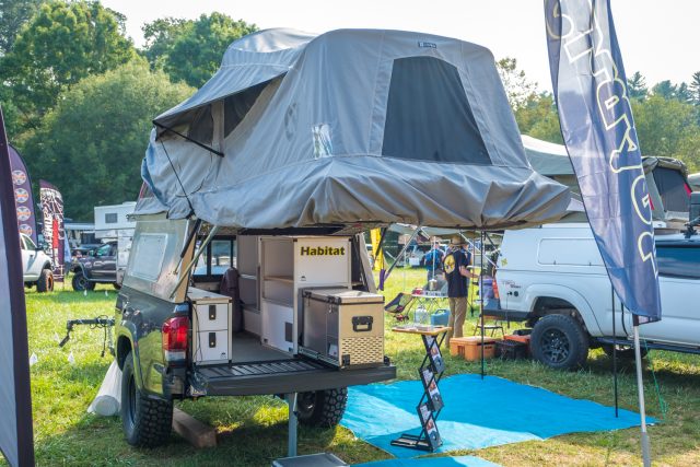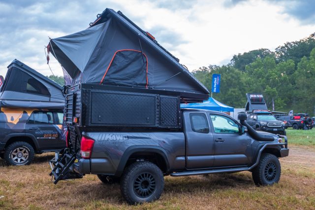 The Goose-Gear Tacoma has always drawn a crowd at overland events, and upon further inspection it’s easy to understand why. Besides the overall excellent appearance of the truck, the interior build out and cabinets are beautiful in their efficiency and clean design. They take the AT Overland habitat from camper shell and tent to full home on wheels. To learn more, check them out here.