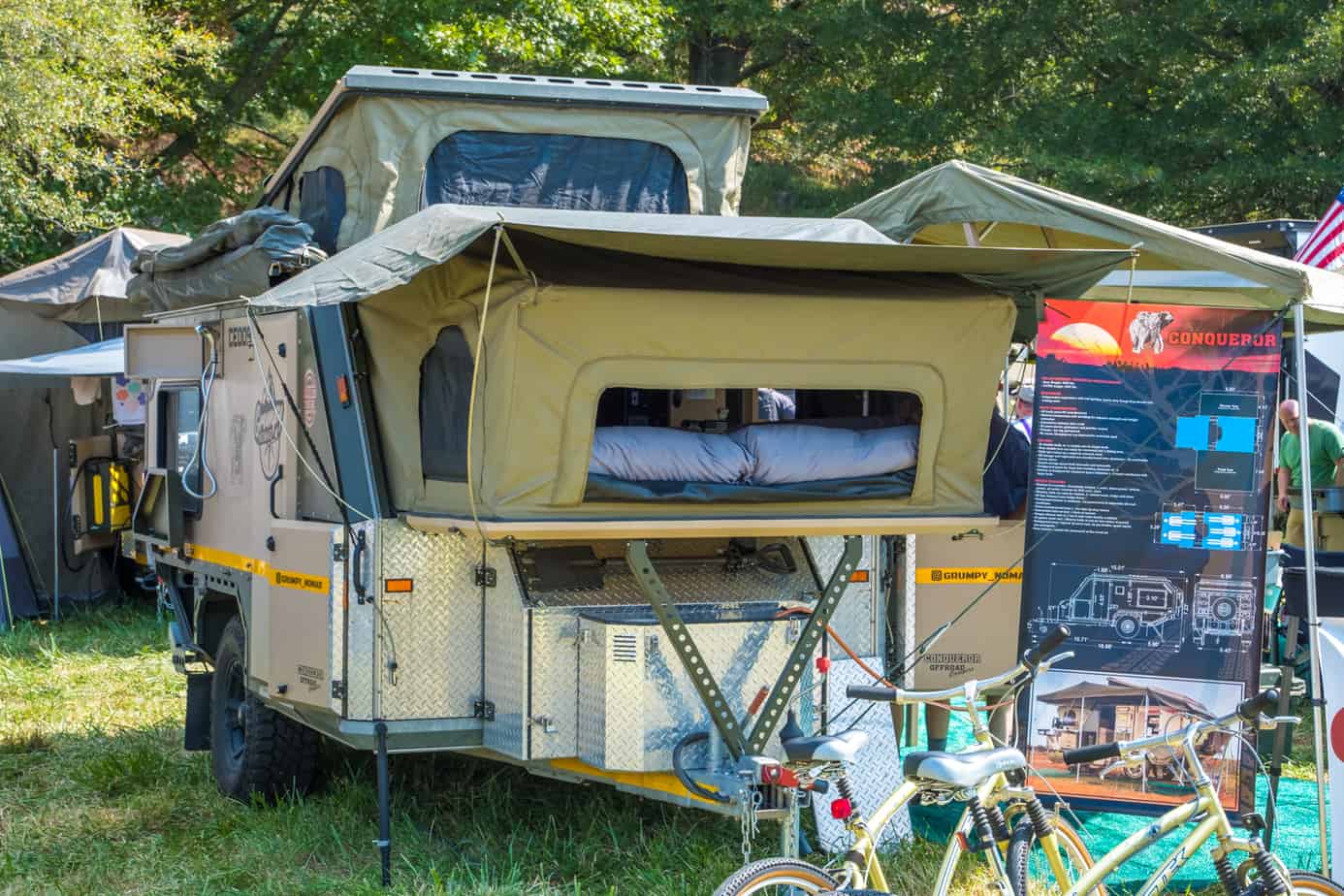 While there are loads of awesome vehicles and products at Overland Expo each year, few command as much attention as the campers and trailers scattered throughout the show. These capable platforms not only look cool, but have made overlanding more comfortable, and in many ways more accessible than ever before. They enable owners to park at the base of a mountain in a snow storm then sleep in a warm dry bed, drive across Africa in an air-conditioned and secure cab, or watch a storm roll outside while enjoying a hot coffee in their dinette. They are homes on wheels, gateways to adventure, and some of our favorite products to use and write about. Thus, we’ve taken the opportunity to give them their own article, “The Campers and Trailers of Expo East.” Let us know which is your favorite!