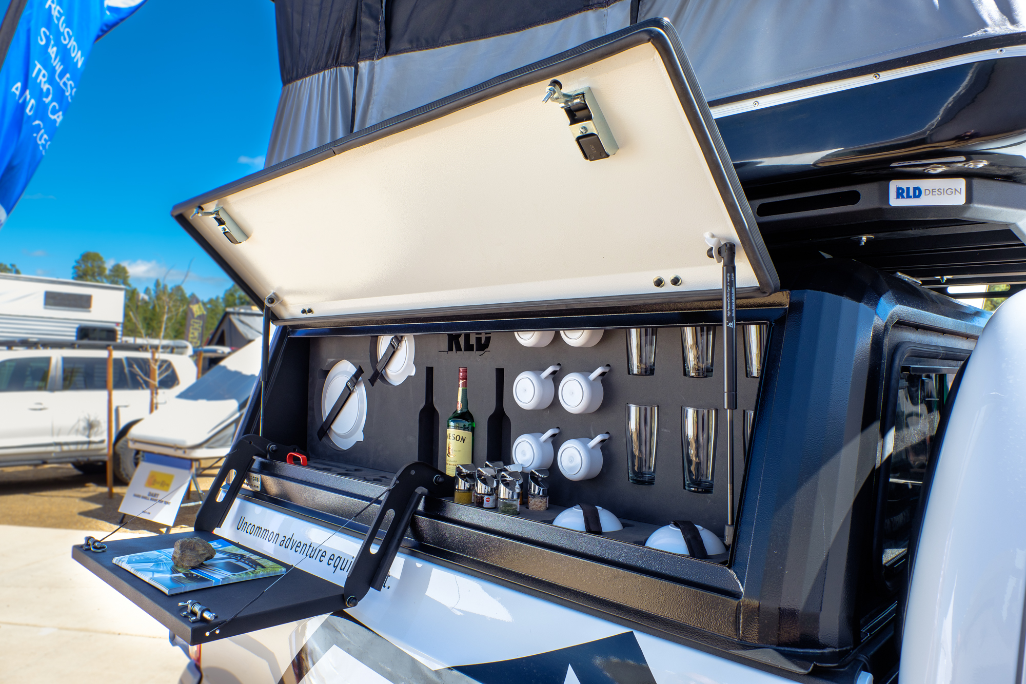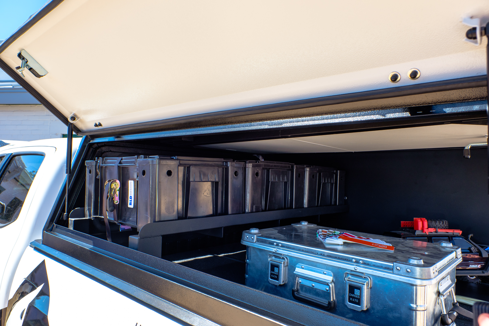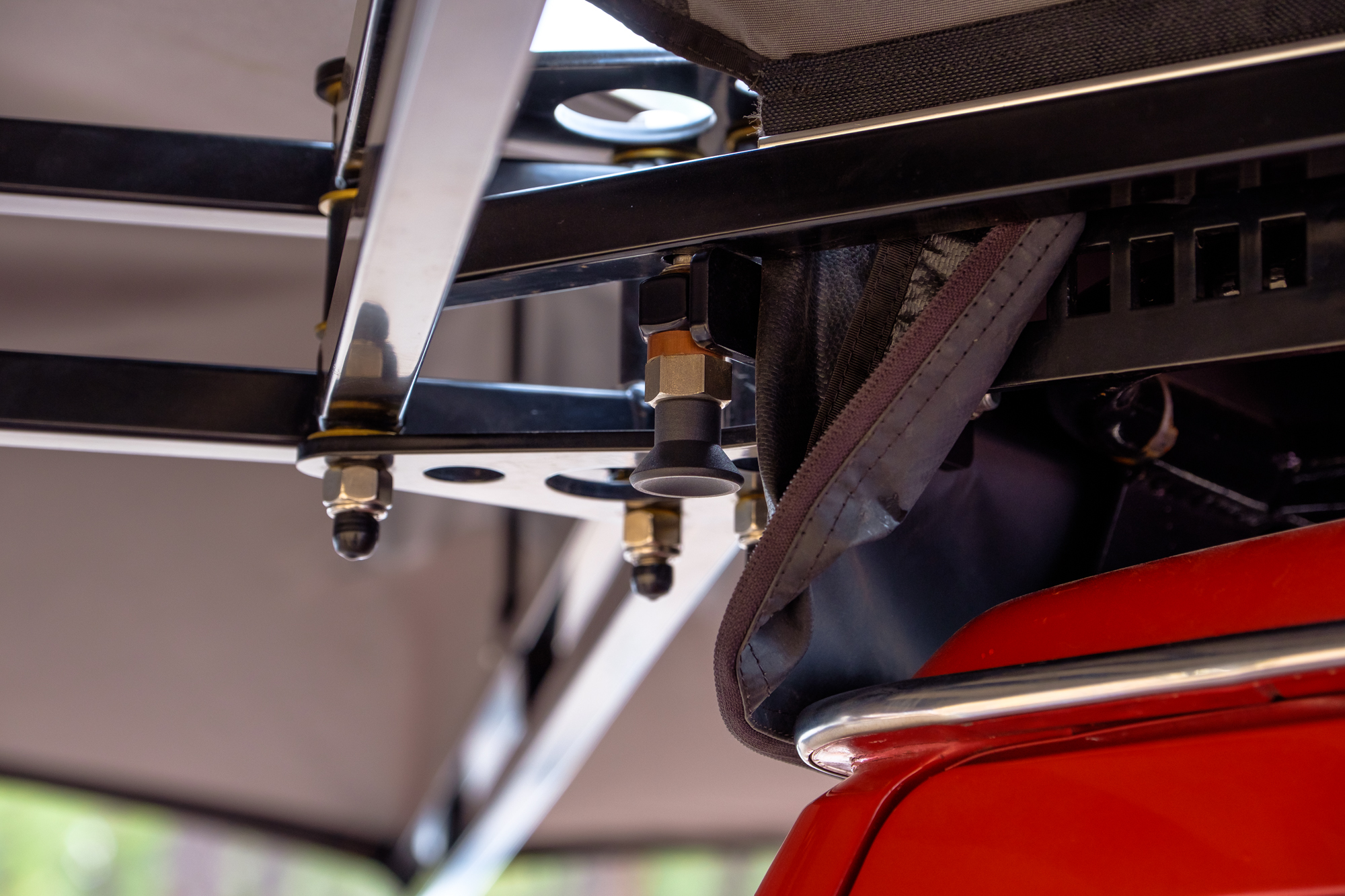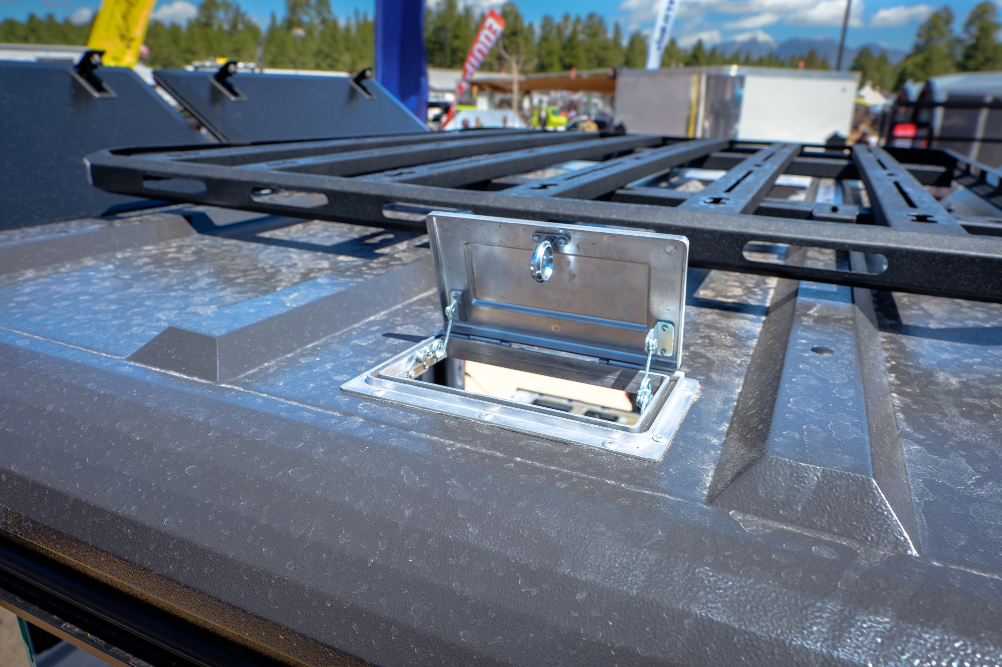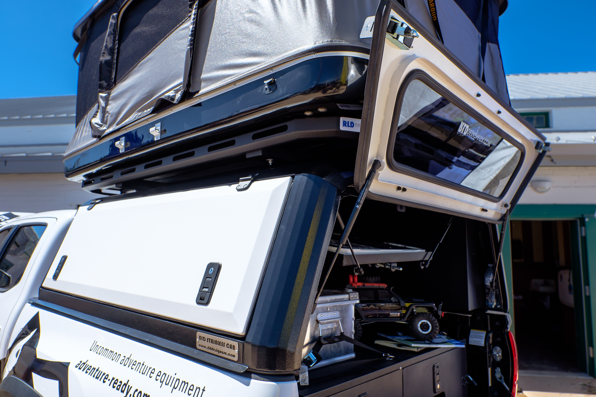 There’s a lot to love when it comes to these canopies, but it all starts with how they’re made. Each component is CAD modeled, laser cut, and bent on a multi-axis CNC machine. Because any welded seam adds weight and possible failure points, RLD set out to use as few as possible. Their roofs are one piece of stainless steel shaped for strength, the corners are bent in sections over six times instead of just meeting at a 90-degree angle, and the side access hatches are even bent to add rigidity for opening or closing them at one corner. The few seams that do exist, which can be as few as four, are TIG welded before the entire canopy is coated in an industrial-grade, 180-micron powder coat finish in your color of choice. The result is a shell that weighs as little as 160 pounds, but carries a 700-pound dynamic load rating!