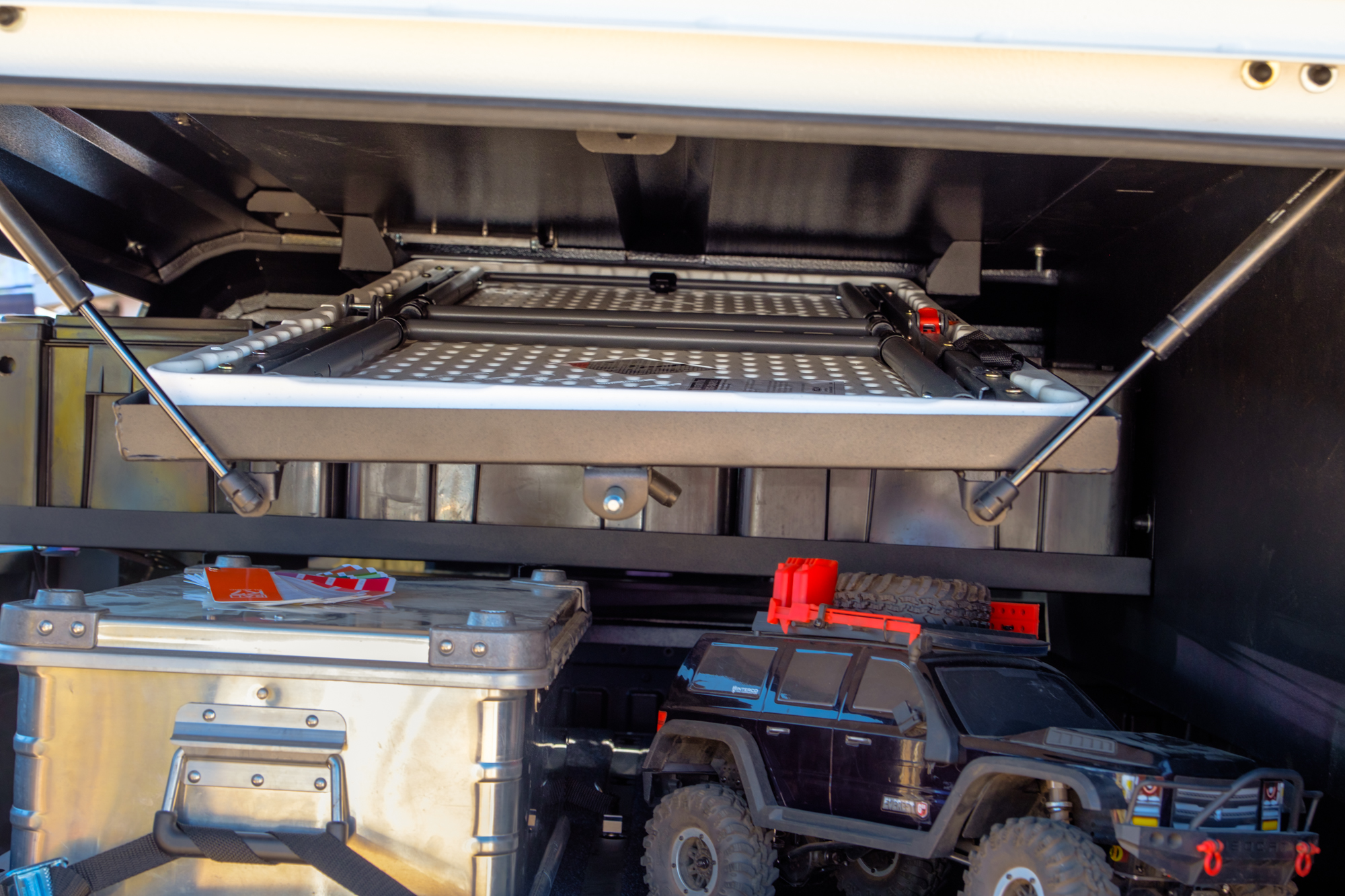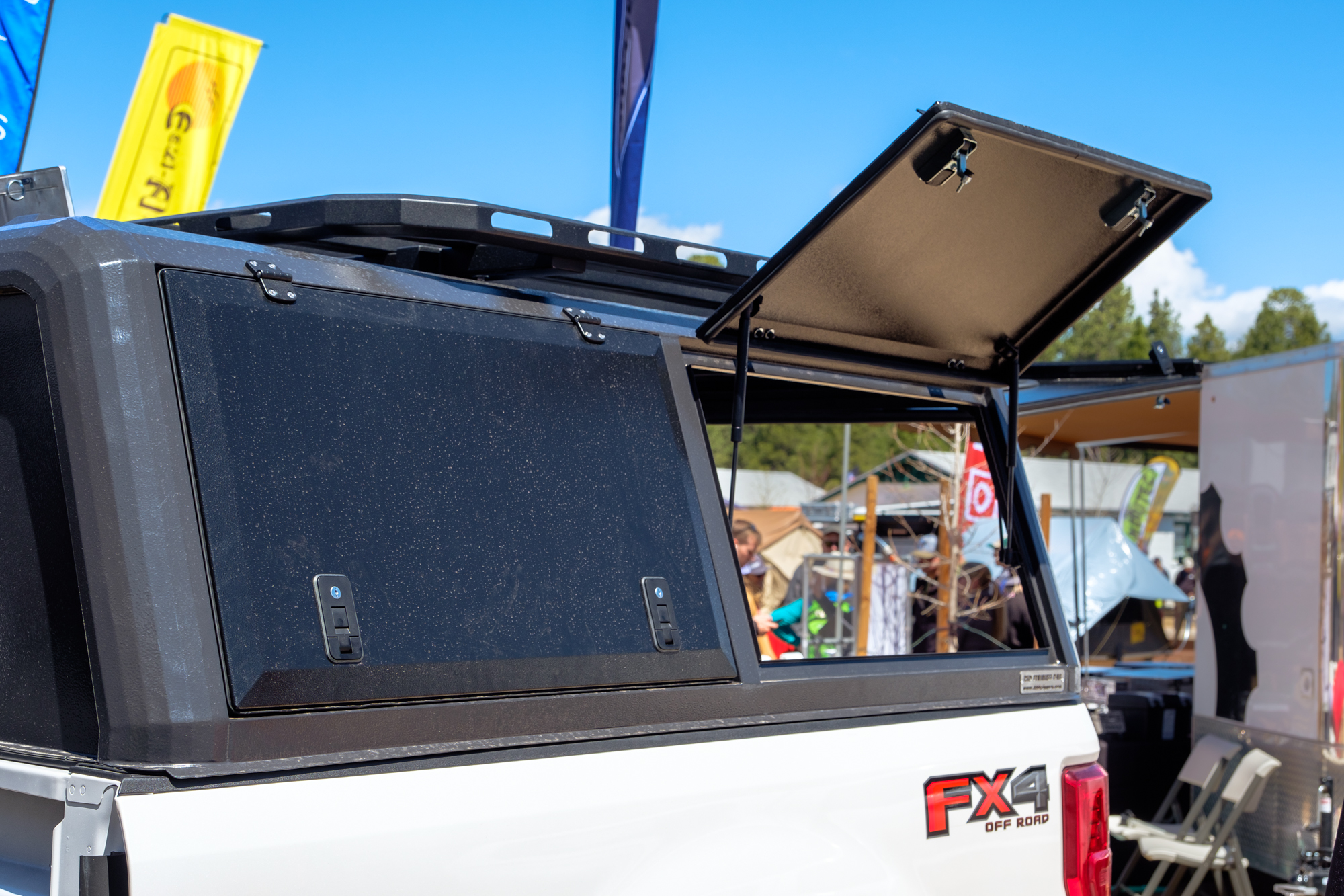 If you’re more about the storage and camp features, don’t worry, they have plenty of those. Each shell can be equipped with side access hatches, solid or sliding windows, and a range of storage solutions we can’t help but love. Take the kitchen, for example, which comes fully stocked with everything you see above, or the drop-down interior table holder which fits standard lifetime tables. Not your style? Check out their drawer system, internal cargo tray for boxes, or heavy-duty drawer system capable of carrying 200 pounds per side. Our favorite feature we’ve saved for last. Each canopy comes standard with a pop-up intake on the roof that sucks in air, creating positive pressure in the bed. This pushes dust and water away from the tailgate seals, keeping the interior dry and dust free.