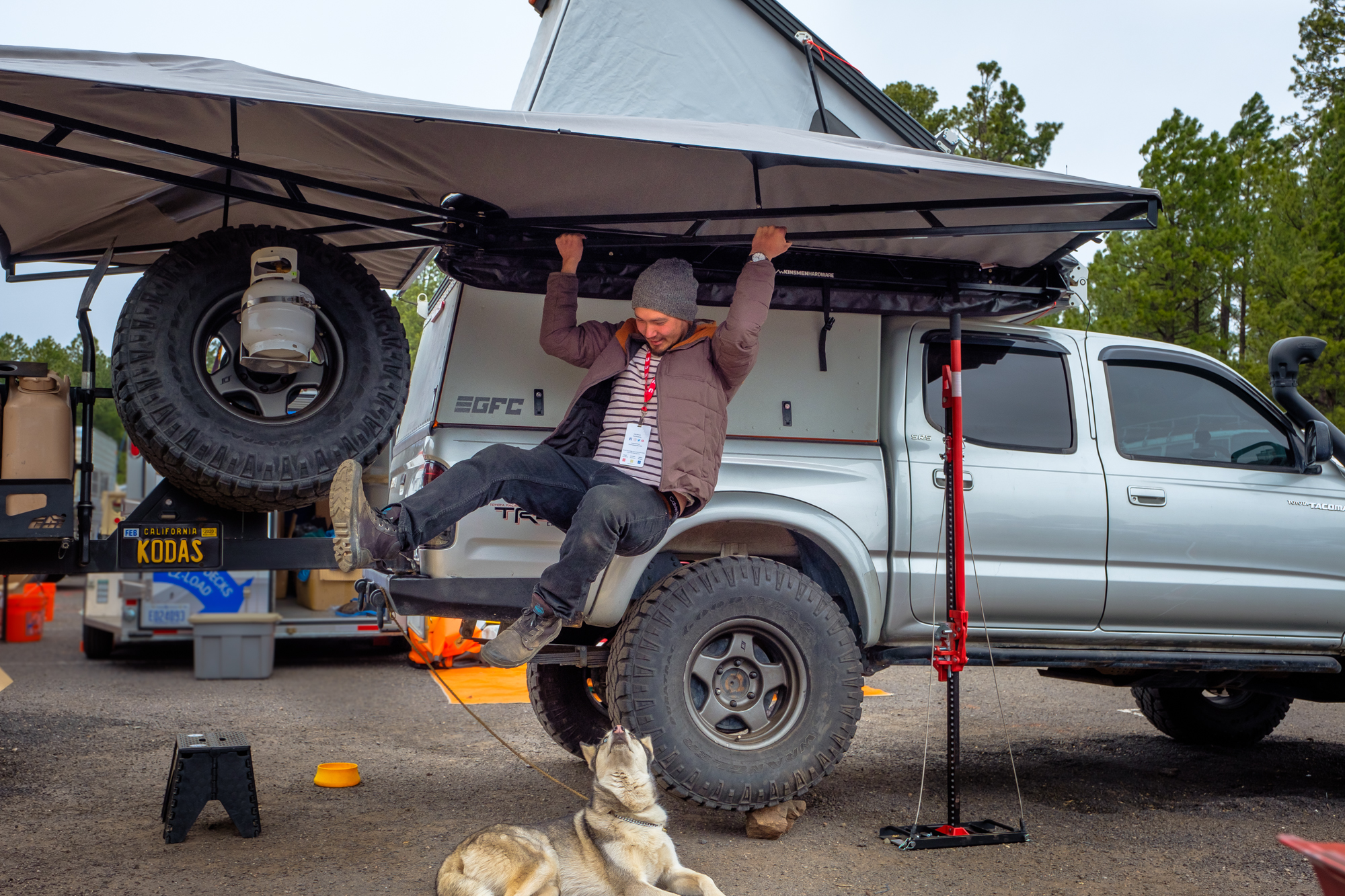 Deploying the awning was shockingly easy thanks to a simple but innovative hinge system. Unlike other products which require you to swing the armatures out and then tie them off to your rack or some other component of the vehicle to hold them open, the Kinsmen uses a lockout which clicks into place as soon as it reaches full extension. This brilliant addition makes the Kinsmen one of, if not the easiest and fastest awnings we’ve ever seen. All of this does come at a cost though, $1,750 to be exact, which is more than almost any competing awning on the market.