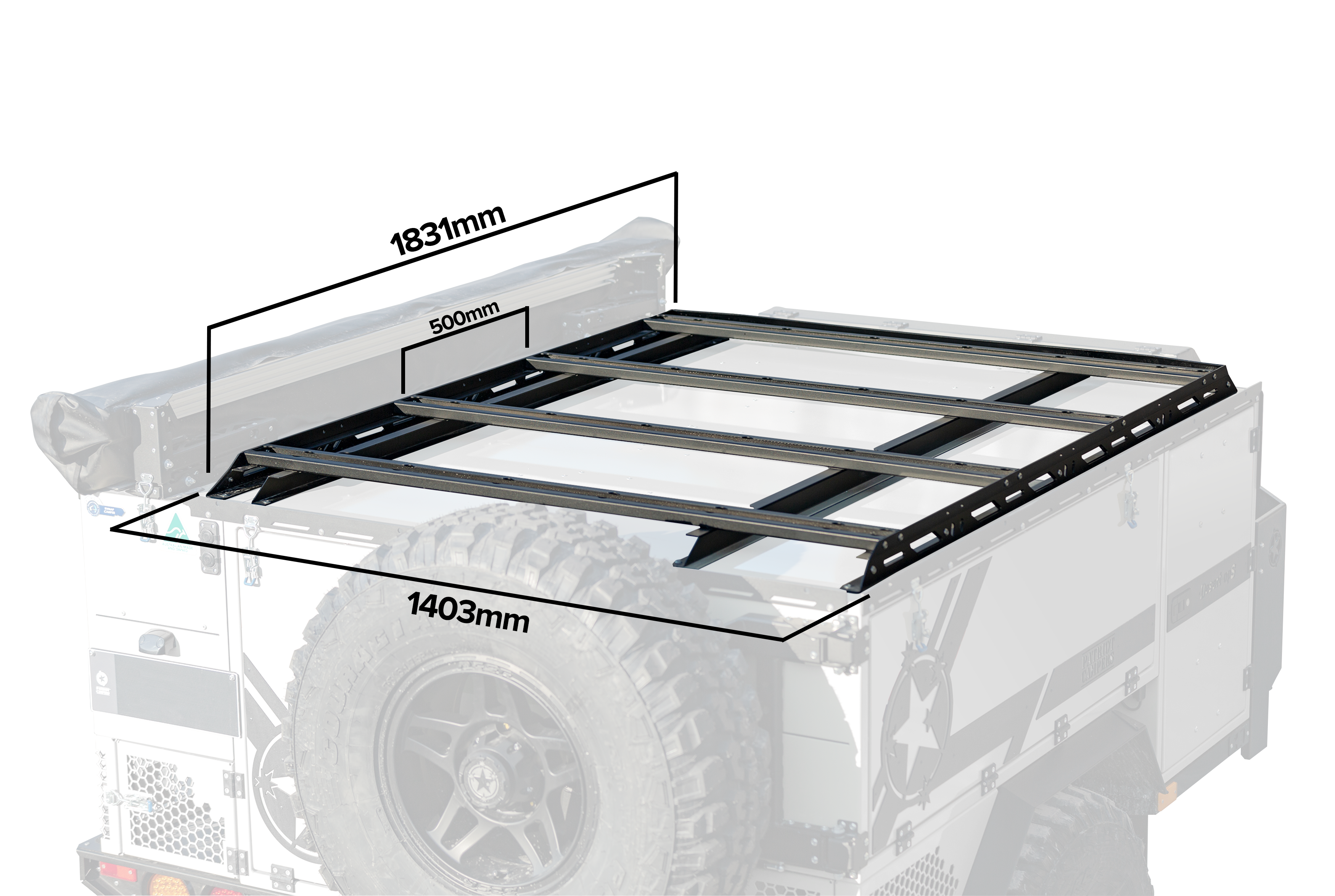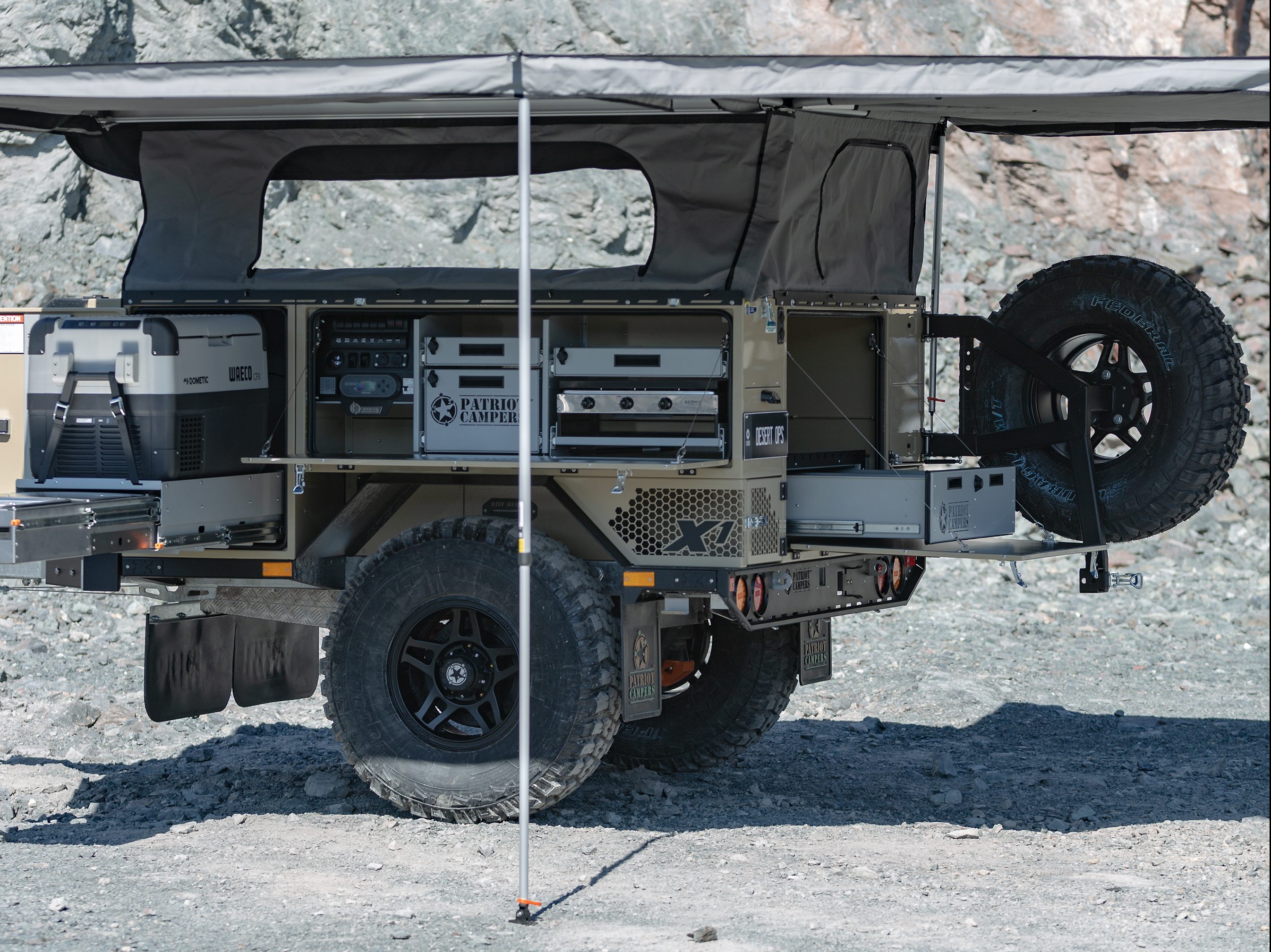 From the launch of the X1, Patriot has always supplied the tent solution, but now a buyer can choose from a bare rack, or a James Baroud Evasion, an iKamper X-Cover, or the iKamper SkyCamp 4. With the X-Rack only, the X1-N utilizes a fully integrated and lightweight platform for mounting nearly any tent, or even crossbars for a canoe, kayak, standup paddleboard, or bikes. Thoughtfully, the trailer is delivered with a 270 degree awning attached to Patriots strut lift assist brackets, which will provide shade over the kitchen, or for taking that mid-afternoon nap.