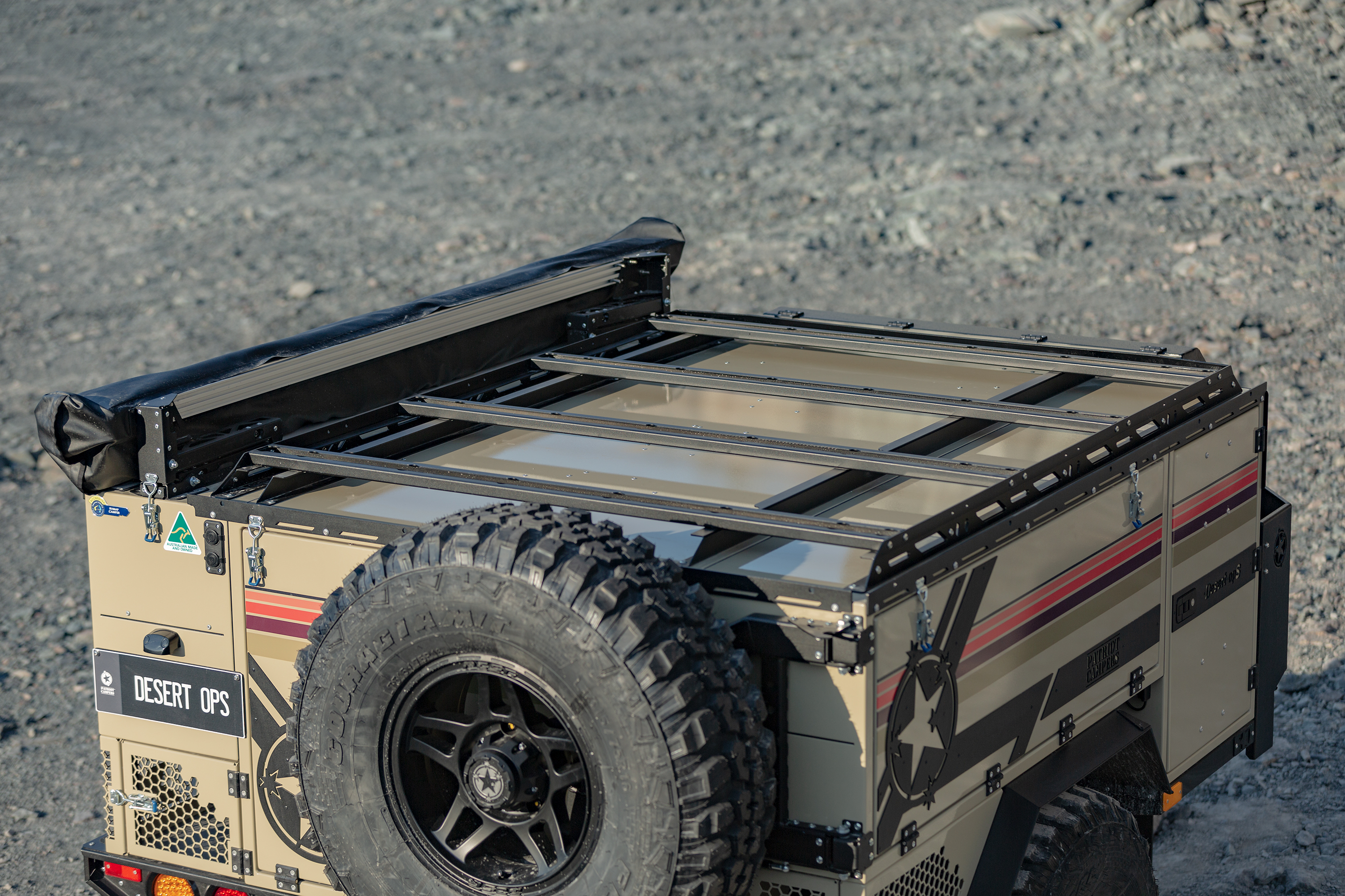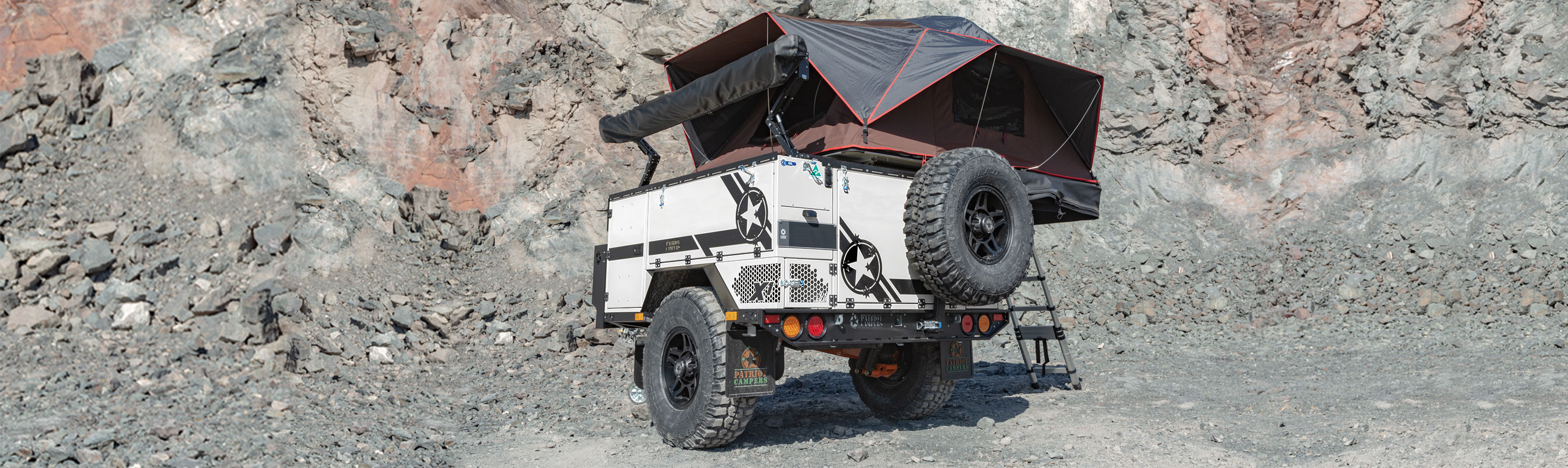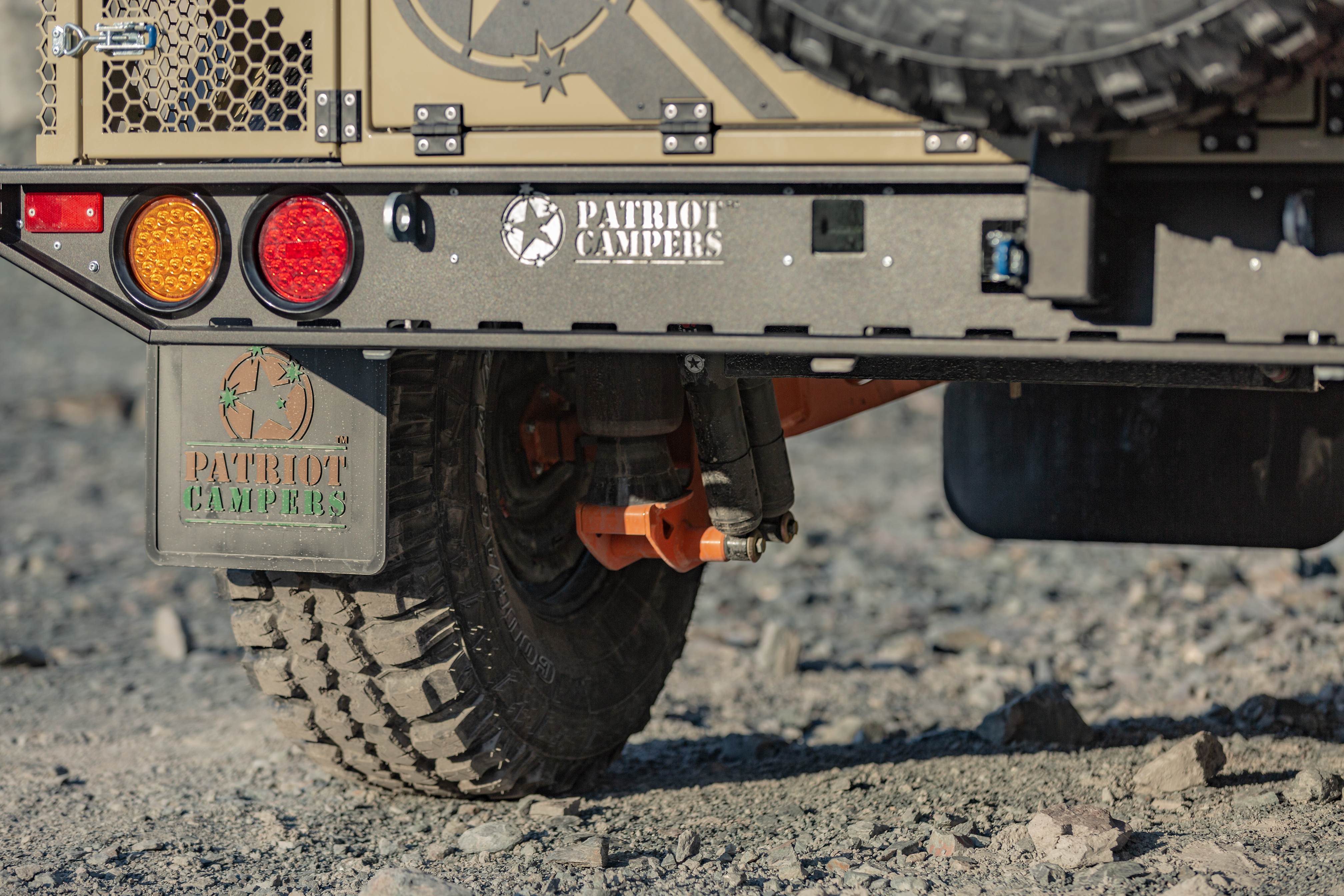 If there is anything Patriot is famous for, it is the quality of their construction (and maybe their Youtube channel). In our experience testing the trailers, they have never faltered despite the terrain, including remote, technical trails and prolonged vibration and dust. The foundation for this is their suspension, which is one of the best in the industry, featuring an independent long-travel trailing arm construction, available self-leveling airbags, and dual shocks to help limit fading. It just works, and also manages to help control trailer sway despite the amount of travel. With the 35 inch tires, there is over 500 millimeters (20 inches) of ground clearance. The entire chassis is hot dip galvanised and extremely robust, which allows for over a 1,300 pound payload.