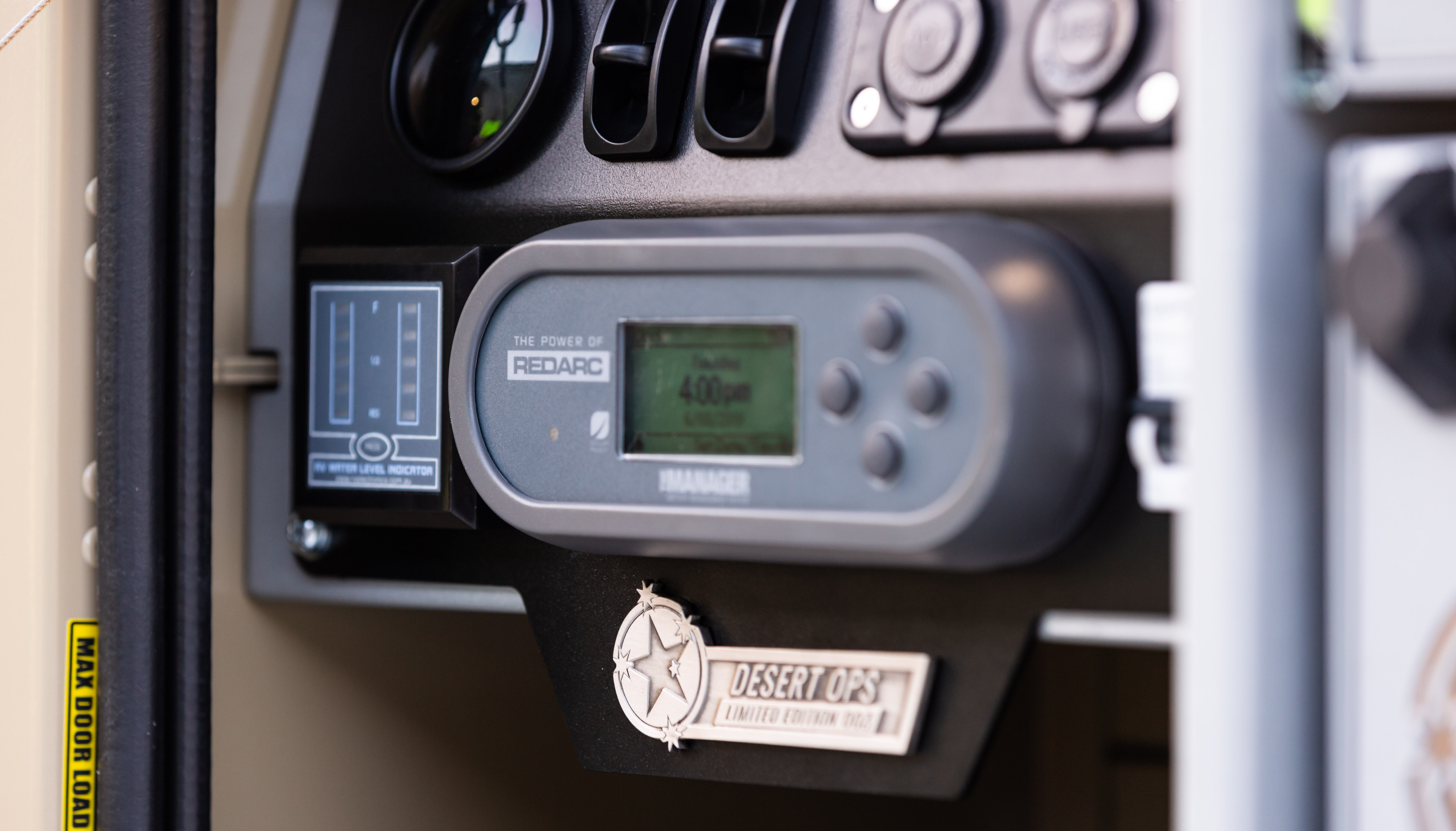 In addition, the trailer comes with generous battery capacity (270 amp hours), LED lighting, and the capability for multiple inputs to the REDARC Manager 30 system, including solar, shore power, and 7-pin charging. All of these inputs and the current state of charge/discharge can be monitored from the REDARC remote command center display.
