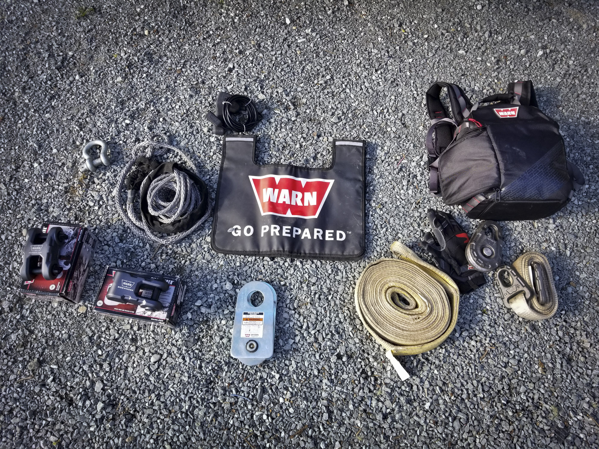 Always have the tools to help you recover yourself or other people. I recommend people carry at least two shackles, a snatch block, a tree trunk protector, recovery strap, and a good set of durable gloves. Also, carrying a line damper or something heavy like a backpack or thick blanket to throw over your line when winching is key.