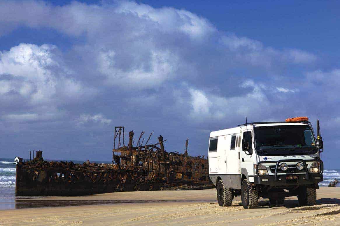 With my long weekend on Fraser Island complete, I rolled up the ferry loading ramp, the Fuso and I now working as one. As the ship rocked in the waves I closed my eyes and let my mind wander to distant lands, parking under a baobab tree in the Kalahari, or on the shore of a glacial lake in Patagonia. The EarthCruiser was certainly ready. And by the way, it will even fit in a shipping container.