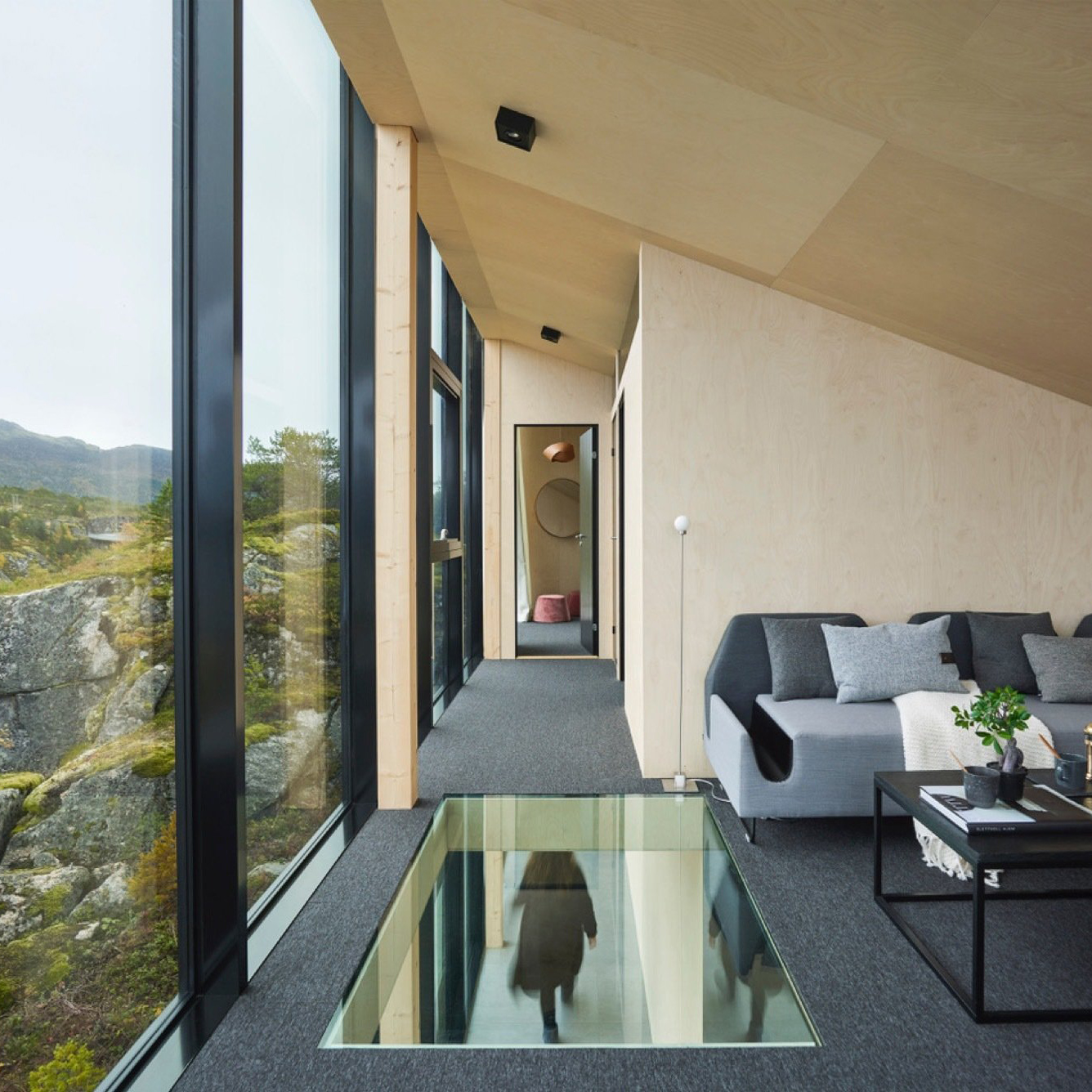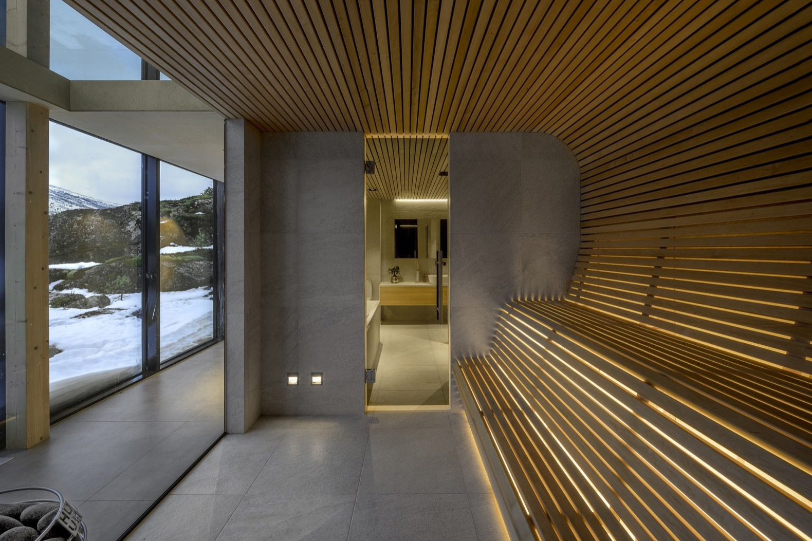 “The shape of the building is both a dialogue with the close natural formations, but also with the larger landscape. Its functional aspects create privacy and indoor/outdoor connections to different zones around the building,” said architect Snorre Stinessen.