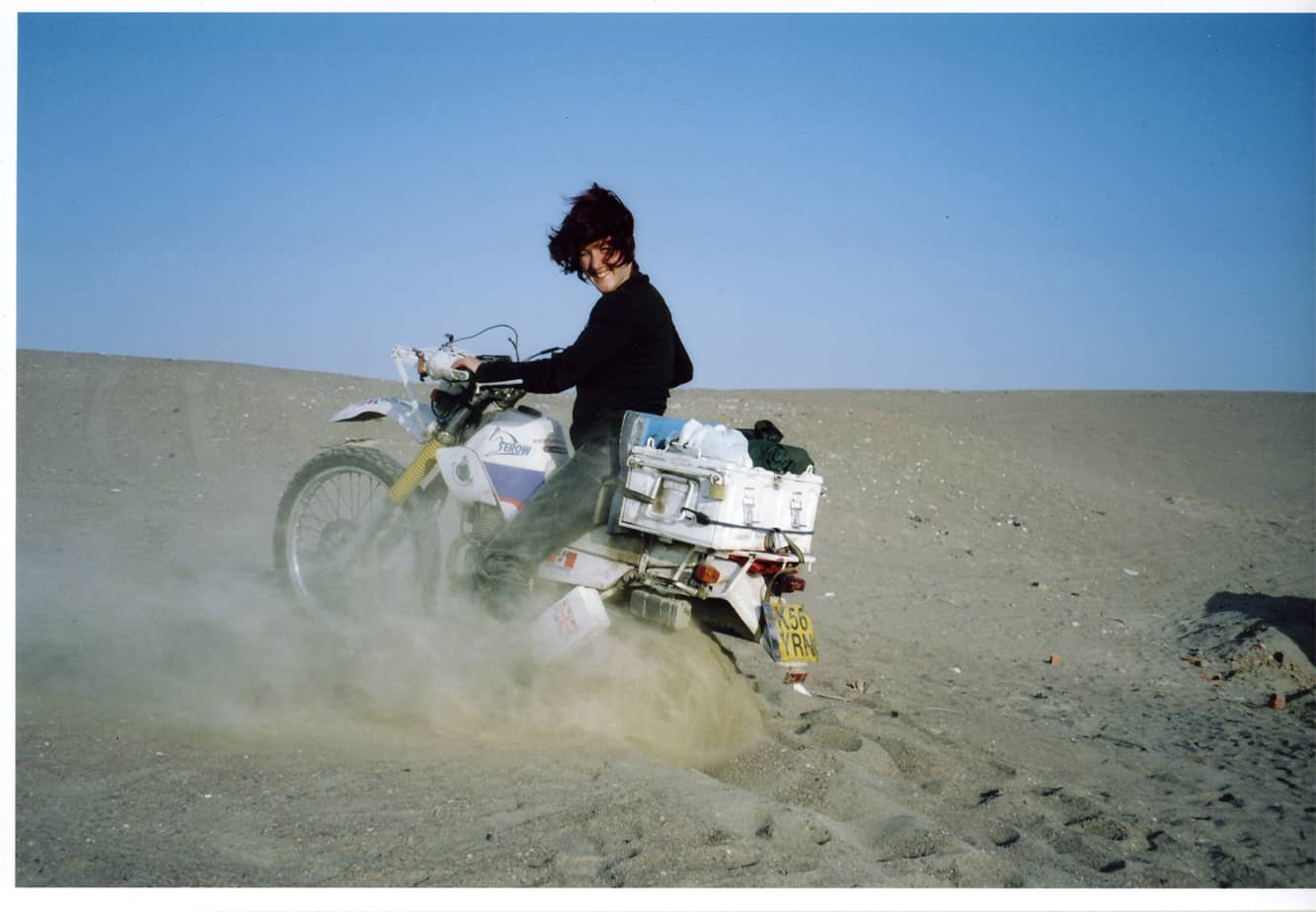 This survival method worked well enough until such an occasion coincided with Rachel overtaking me on my left. As a furious squall slammed in from the west, spinning my bike around, the front wheel drove slap-bang into her back wheel. I crashed. She looked around to see what had happened. She crashed. It was a comical sight; the two of us sprawled on the road next to our supine motorcycles.