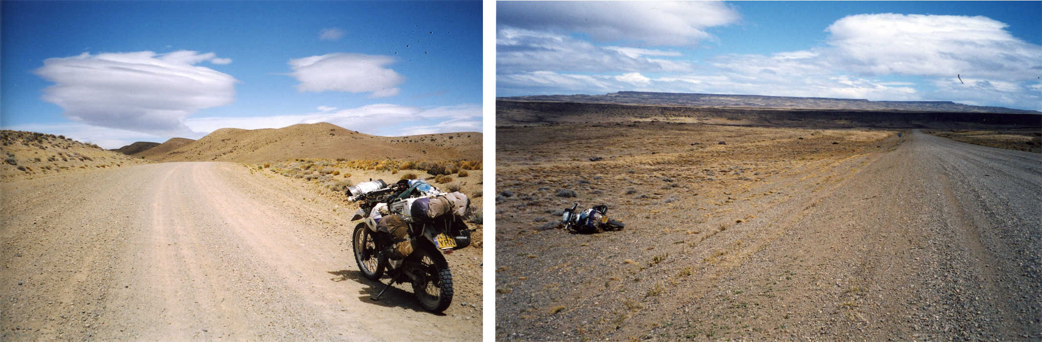 “WE’VE GOT SIX HUNDRED MILES OF THIS!” we shouted at each other above the roaring in our ears, laughing with adrenalin-fueled hysteria. There was nothing else for it but to continue. Civilization as we knew it was a long way down the road, and the Patagonian landscape remained as empty and bleak as I could imagine. The little black dots on the map became sources of fantasies, but our hopes were regularly dashed when they turned out to be non-existent or, at best, a derelict house. I had never felt so aware of being in the middle of a lonely and hostile land on the edge of the world. “Never again will I refer to the suburbs of London as being in the middle of nowhere,” I solemnly vowed to Rachel that night.