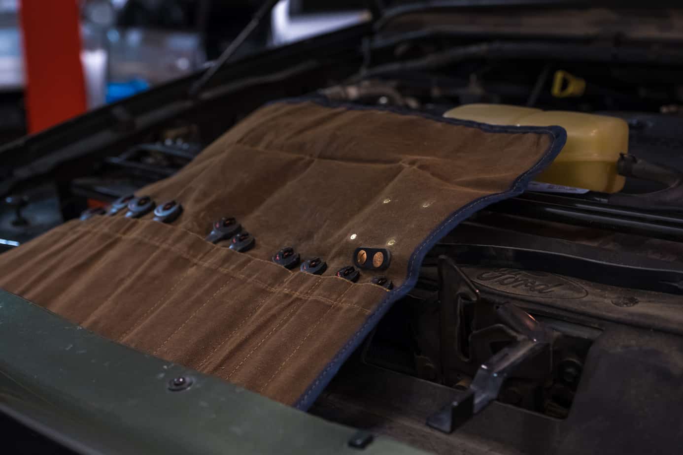 The waxed canvas tool roll, on the other hand, is well thought out, a perfect option for small wrenches and other miscellaneous items. Although I already have a set of Adventure Tool Company tool rolls and bags, I needed some additional storage for my ratcheting wrenches. This fit the bill perfectly and tucks neatly into my toolbox alongside my other rolls. You have to love organization!