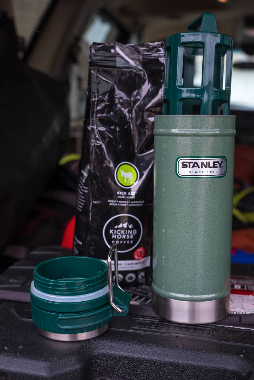 Inside the Overlander Box I found a plethora of goodies. A Get Lost-branded beanie, a sweet sticker, a waxed canvas Overland tool roll, a bag of Kicking Horse Coffee, and a Stanley vacuum steel French press, all carefully wrapped and packaged. I immediately pulled out the French press and coffee which found a permanent home in my truck’s kitchen kit. I love coffee, so both of these were serious wins for me. I also really liked the sticker, which found a place in my Alu-Box alongside many others I have collected during my travels so far.