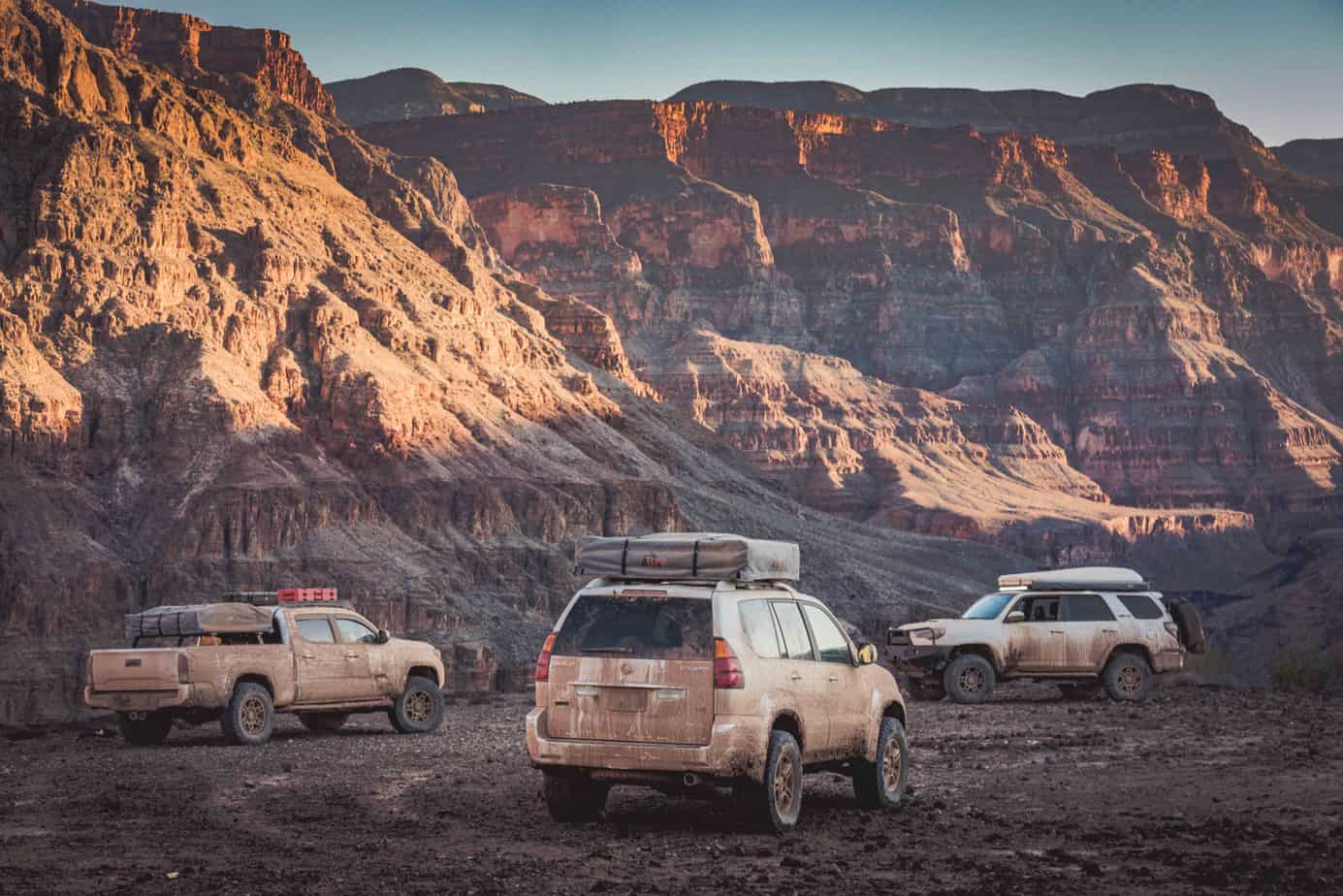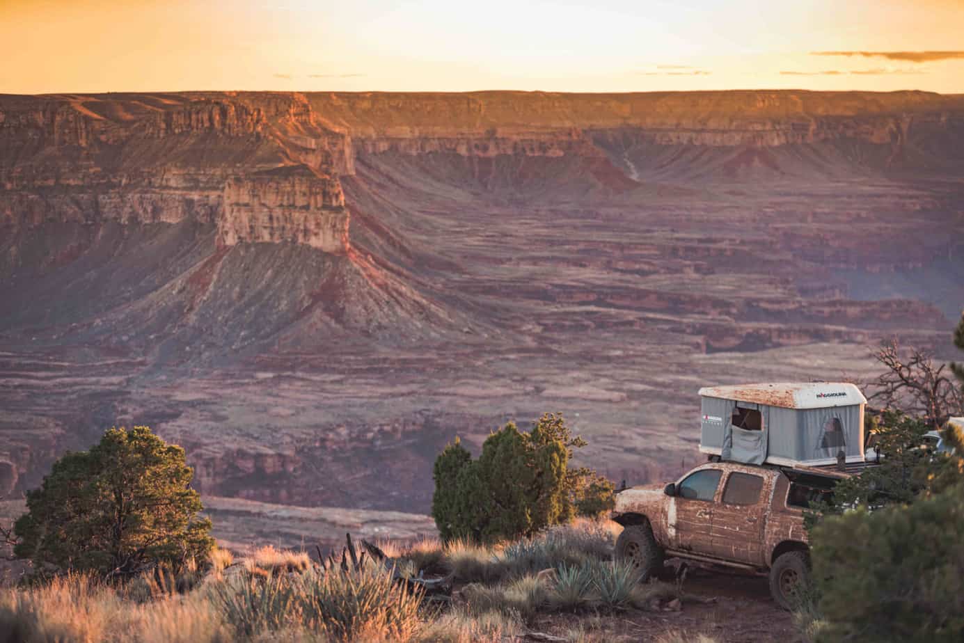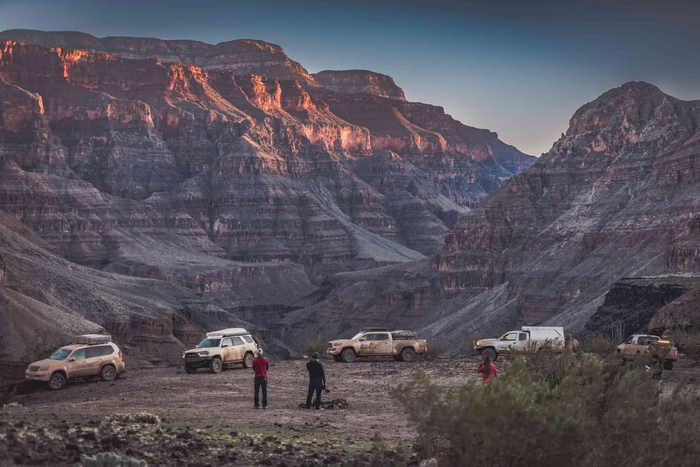 To make camp before sunset, we needed to double back almost 70 trail miles to our next campsite at Jumpup Point, right on the edge of the canyon rim. We pulled in just as the sun dipped below the horizon.