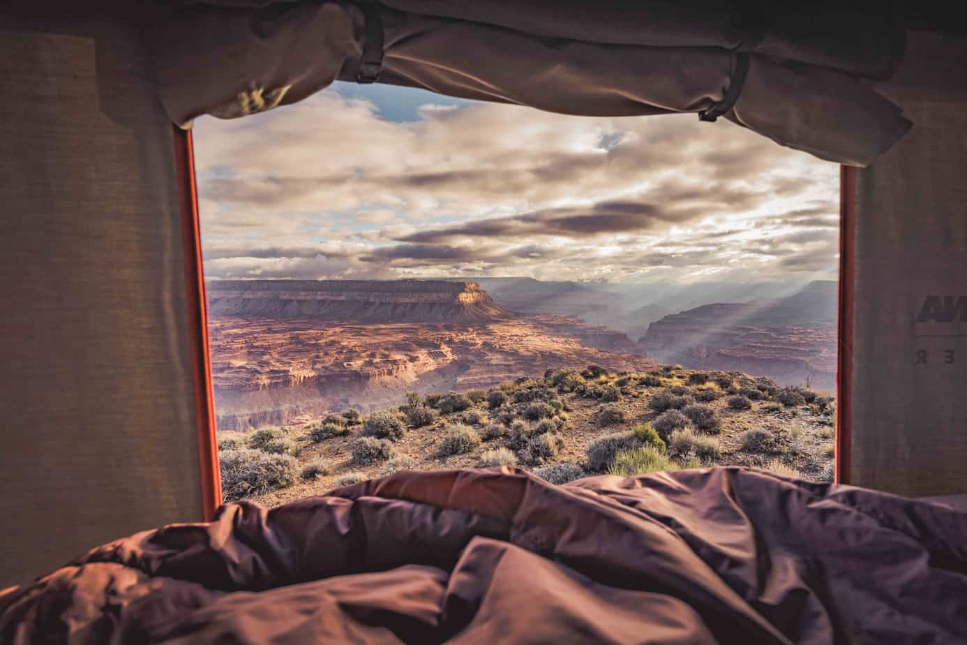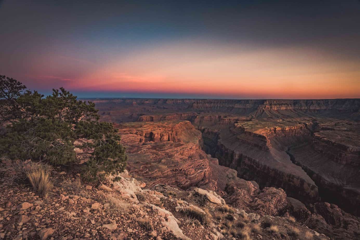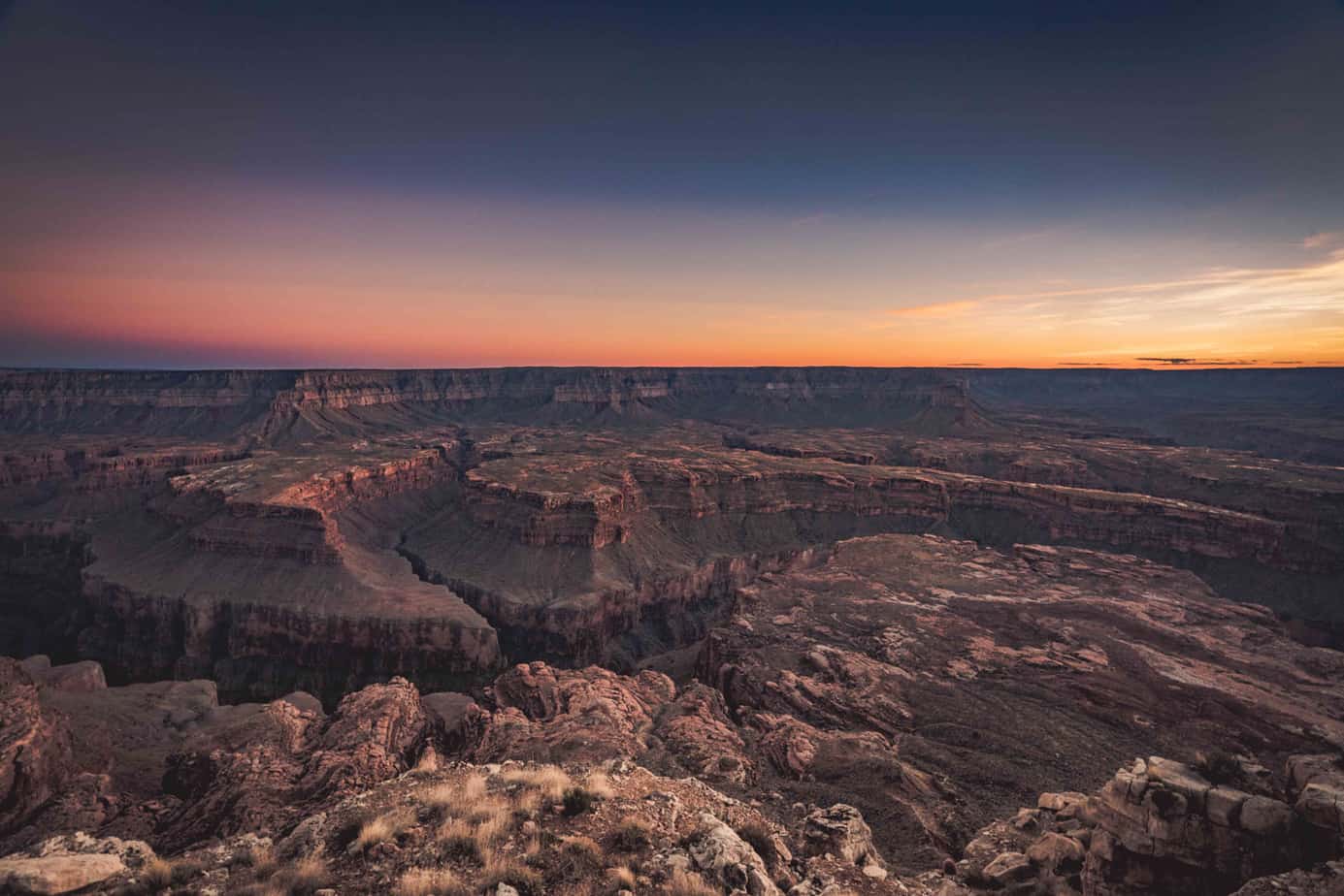 To make camp before sunset, we needed to double back almost 70 trail miles to our next campsite at Jumpup Point, right on the edge of the canyon rim. We pulled in just as the sun dipped below the horizon.