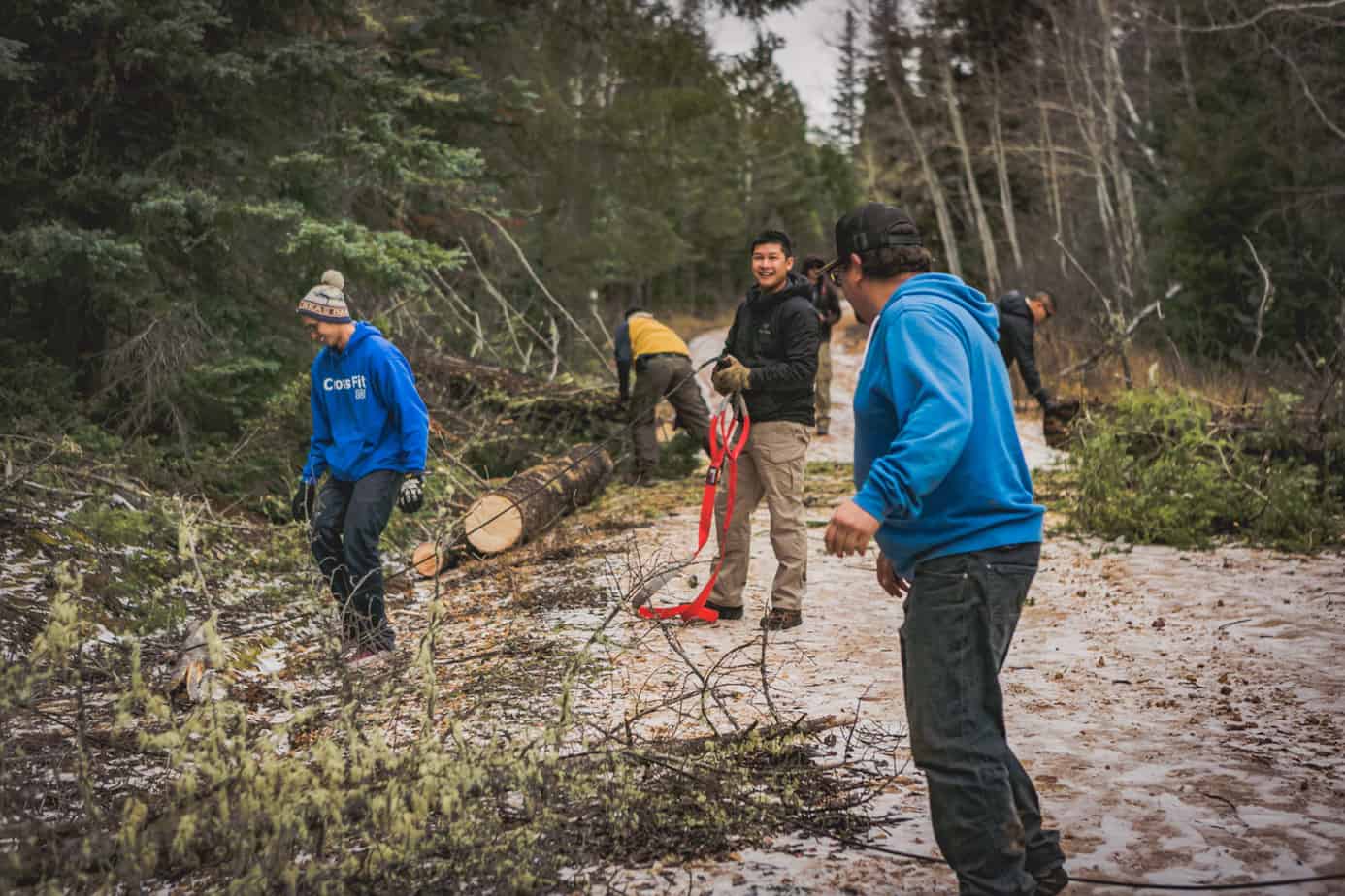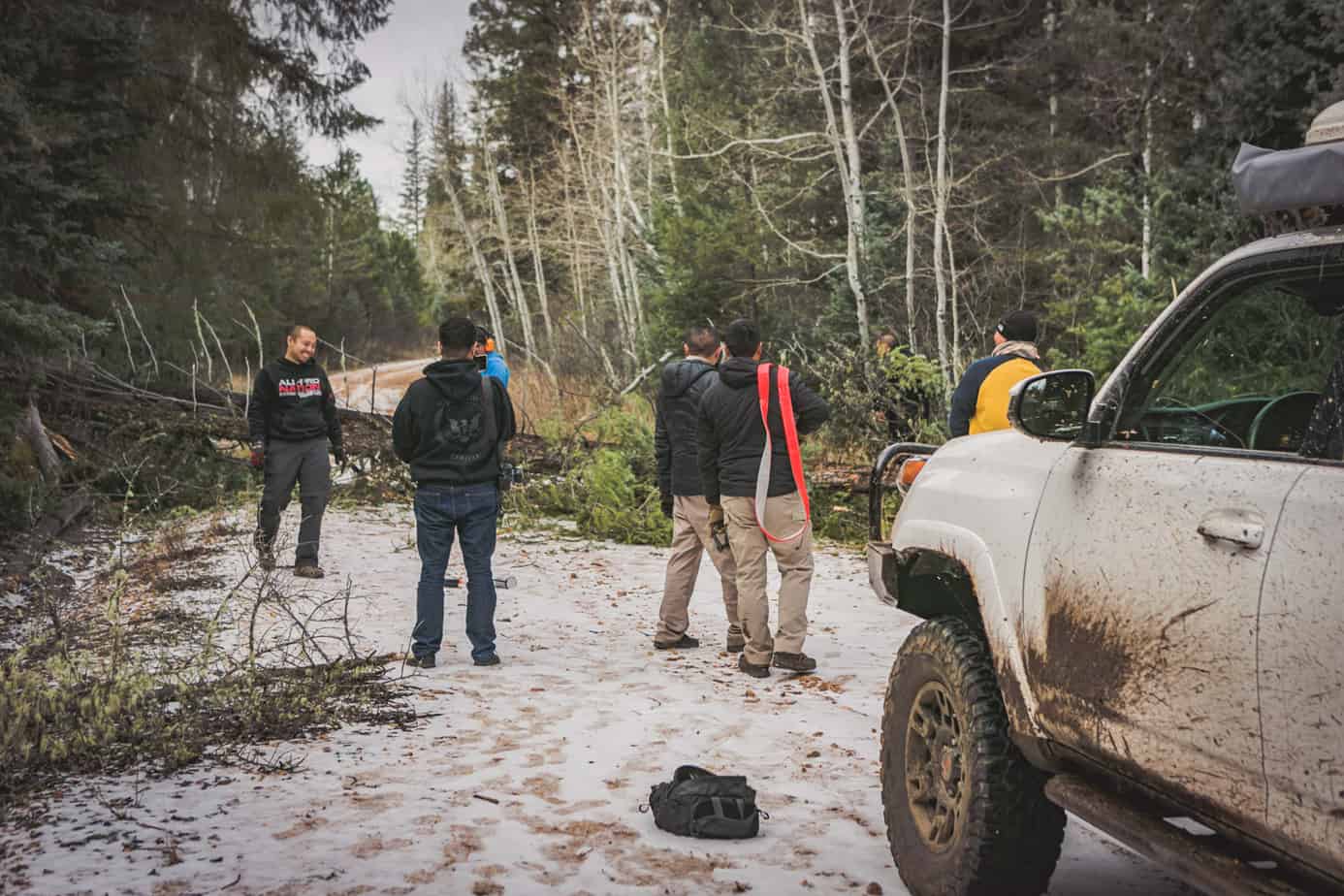 We opted to skip the hike to Parasawampitts Point the following morning, hitting the trail to Point Sublime early as we had a long day of driving ahead. A downed bundle of trees along Point Sublime Trail halted our progress, requiring us to deploy the chainsaw and winch to clear the trail.