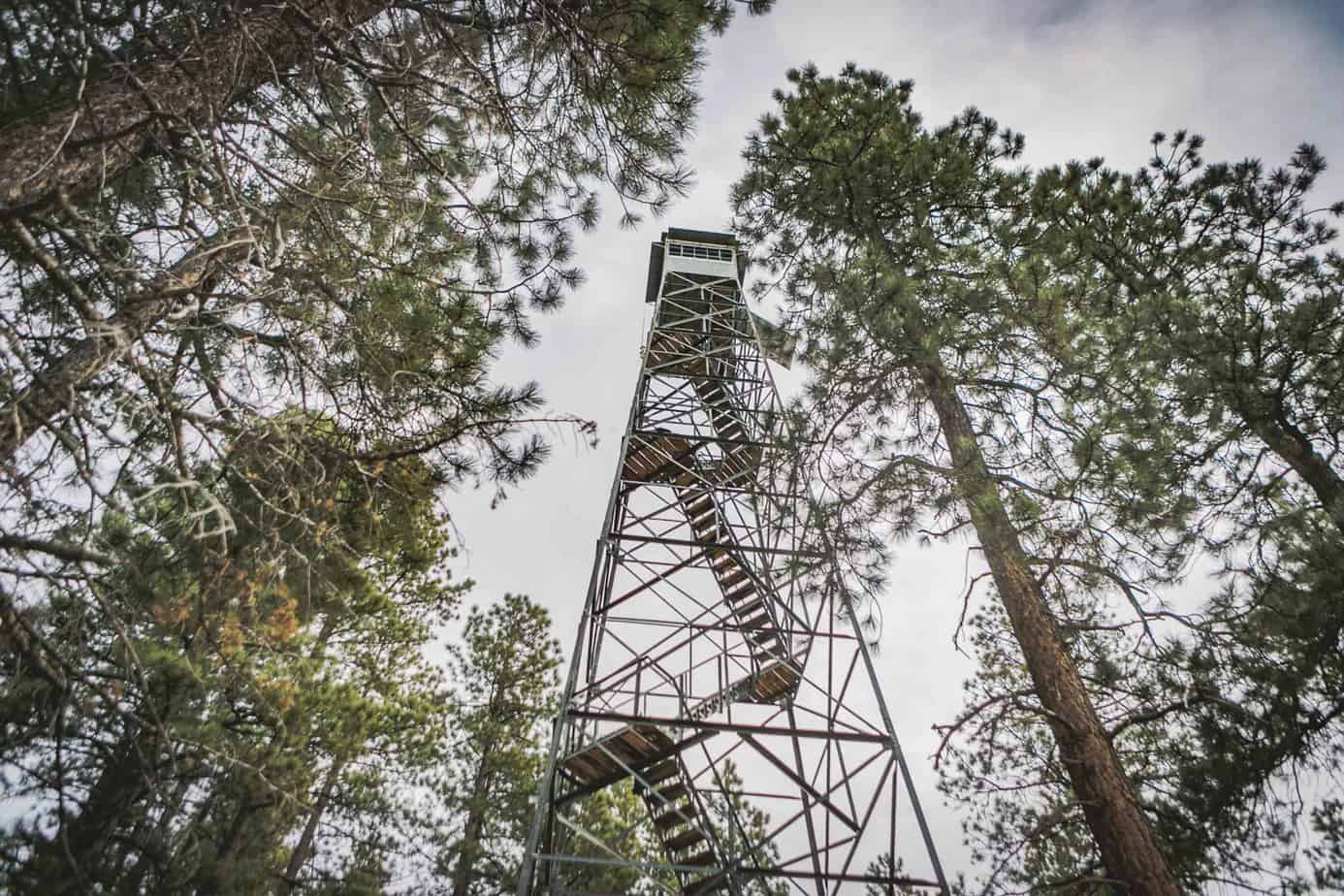 Free from the downed trees at last, we continued on the trail further down Point Sublime, deciding to take a quick shortcut to Kanabownits Lookout Tower which provided us with our first glimpse of the canyon below. We were stopped again several times by deadfall, and worked to quickly clear the route.