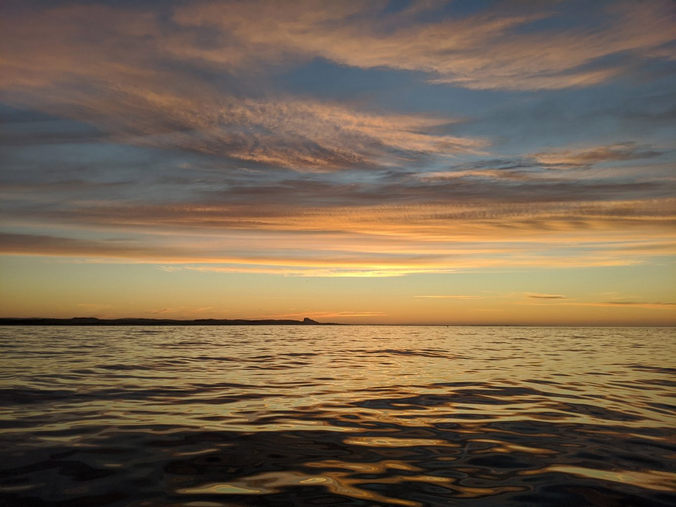We returned to shore as the sun set, the light making the sea gleam like a bale of tangerine silk. Seabirds skimmed across the water, and I could just make out the hazy outlines of Bamburgh and Lindisfarne castles. First swimming with seals, now a magnificent sunset. Who needs the Red Sea when we have all of this?