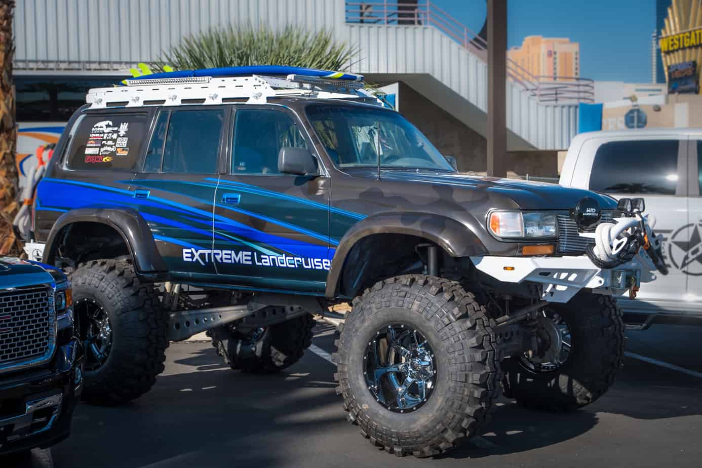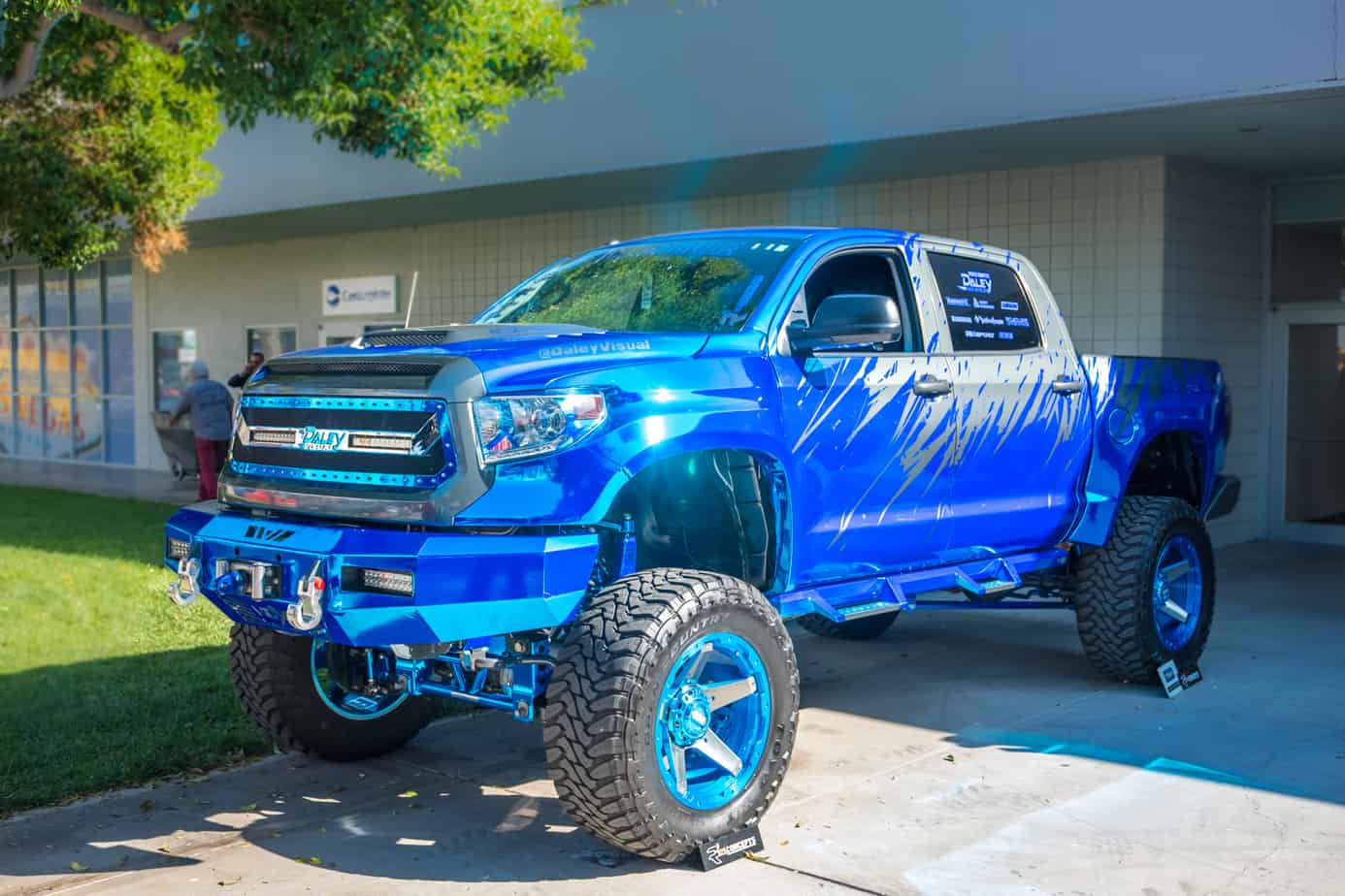 If insanely bright paint jobs are your thing, then look no further than the three four-wheel drives above. Sporting blue chrome, red chrome, and one of the craziest color changing paints we’ve ever seen, they are sure to attract a crowd. Of course, they might also blind that crowd with reflected light, so don’t stand too close.