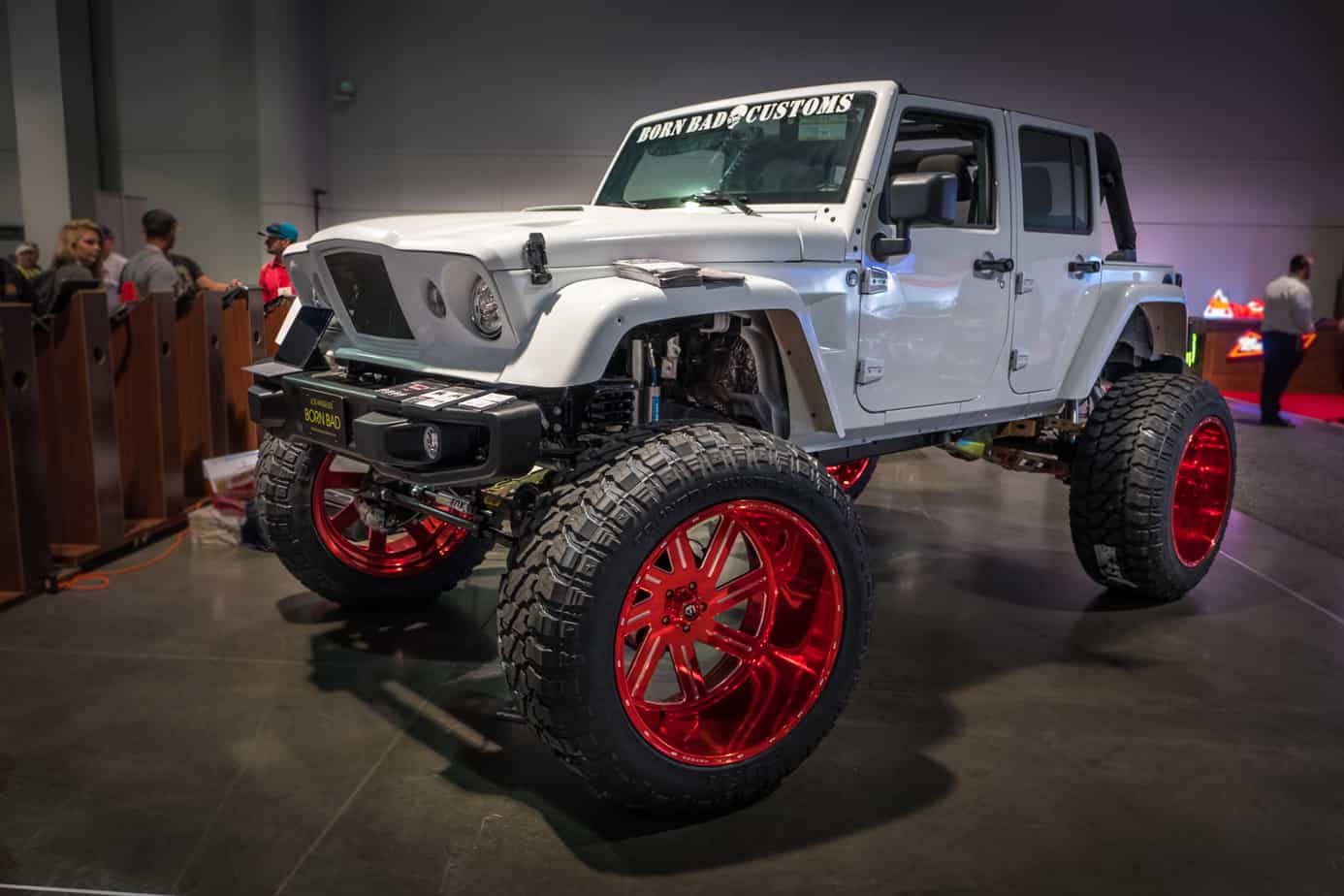 Between the retro grill, giant red-chrome wheels, and the gargantuan lift, we really don’t know what is going on with this JK. It certainly wasn’t born bad like the company’s name suggests, but they did a good job of making it look that way.