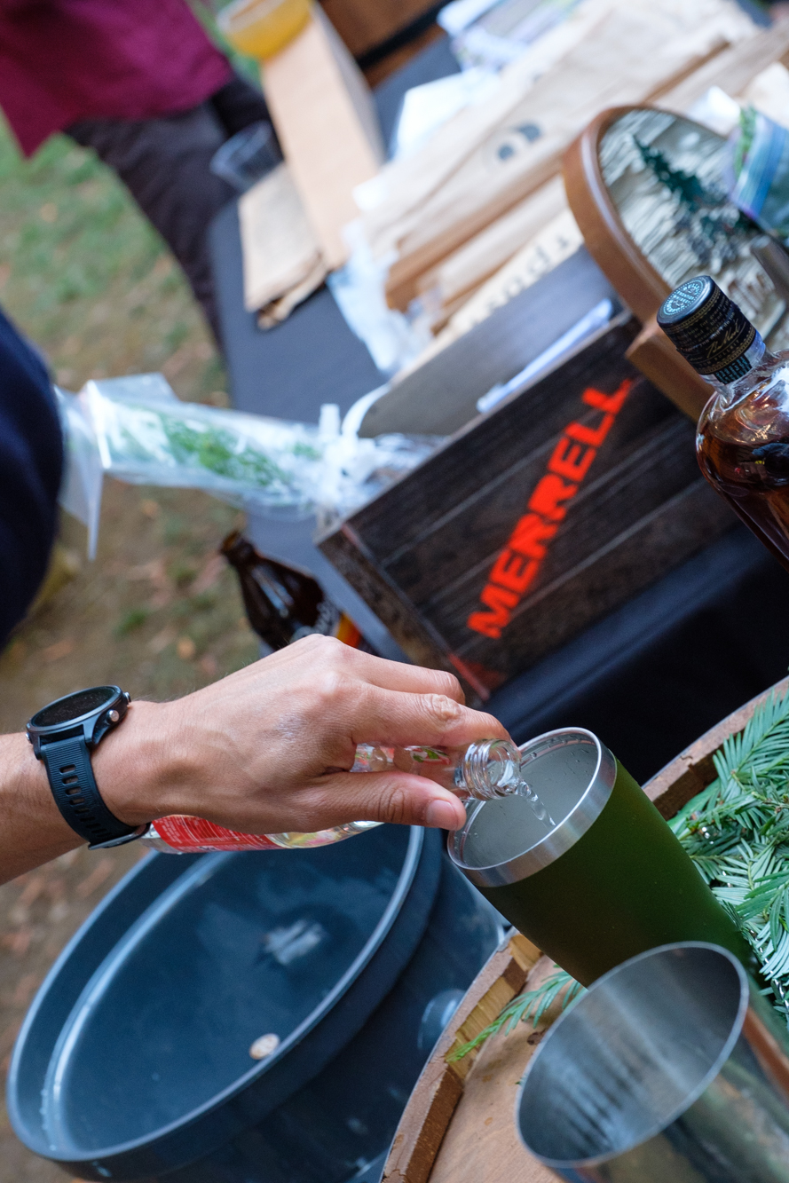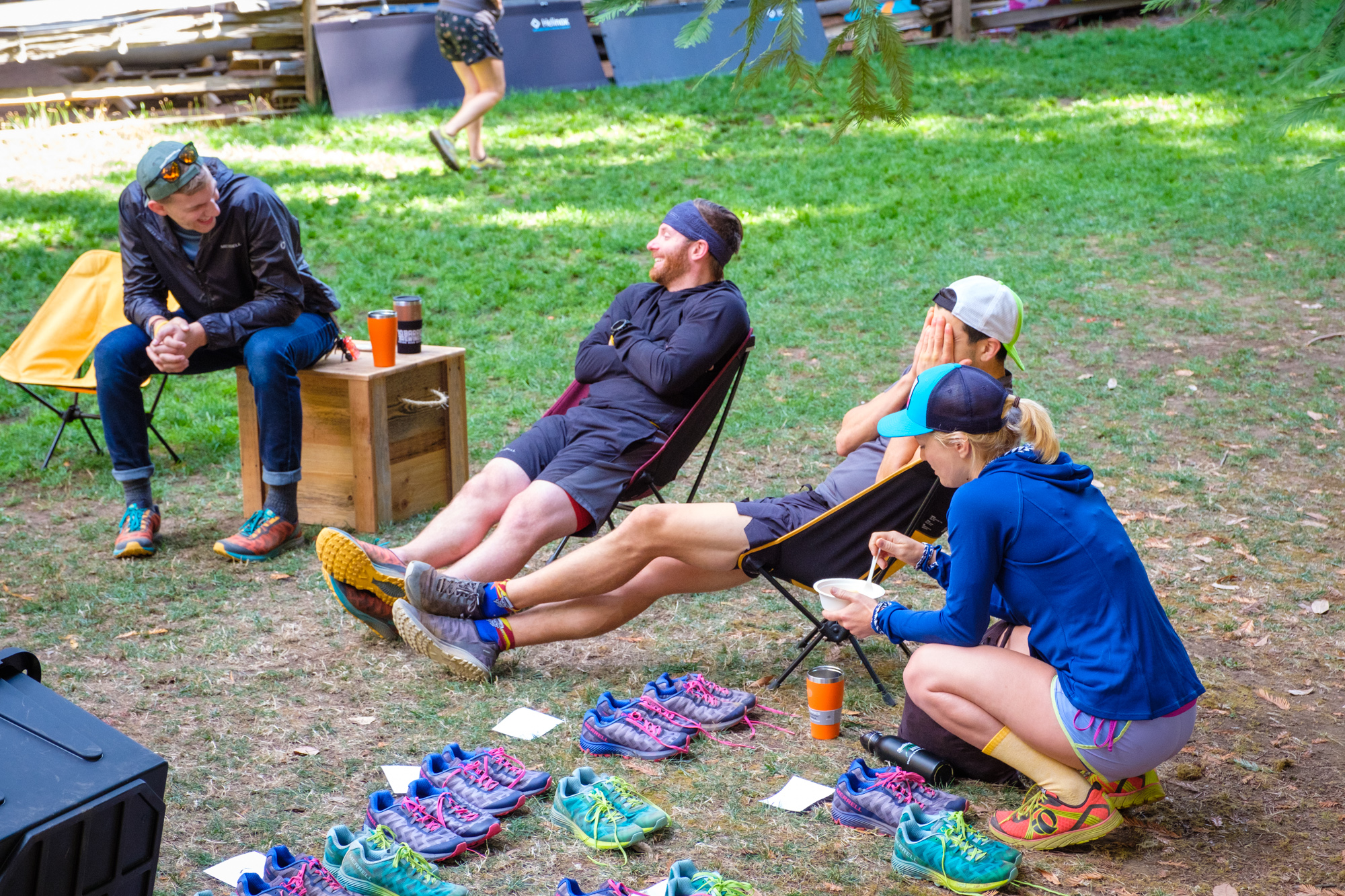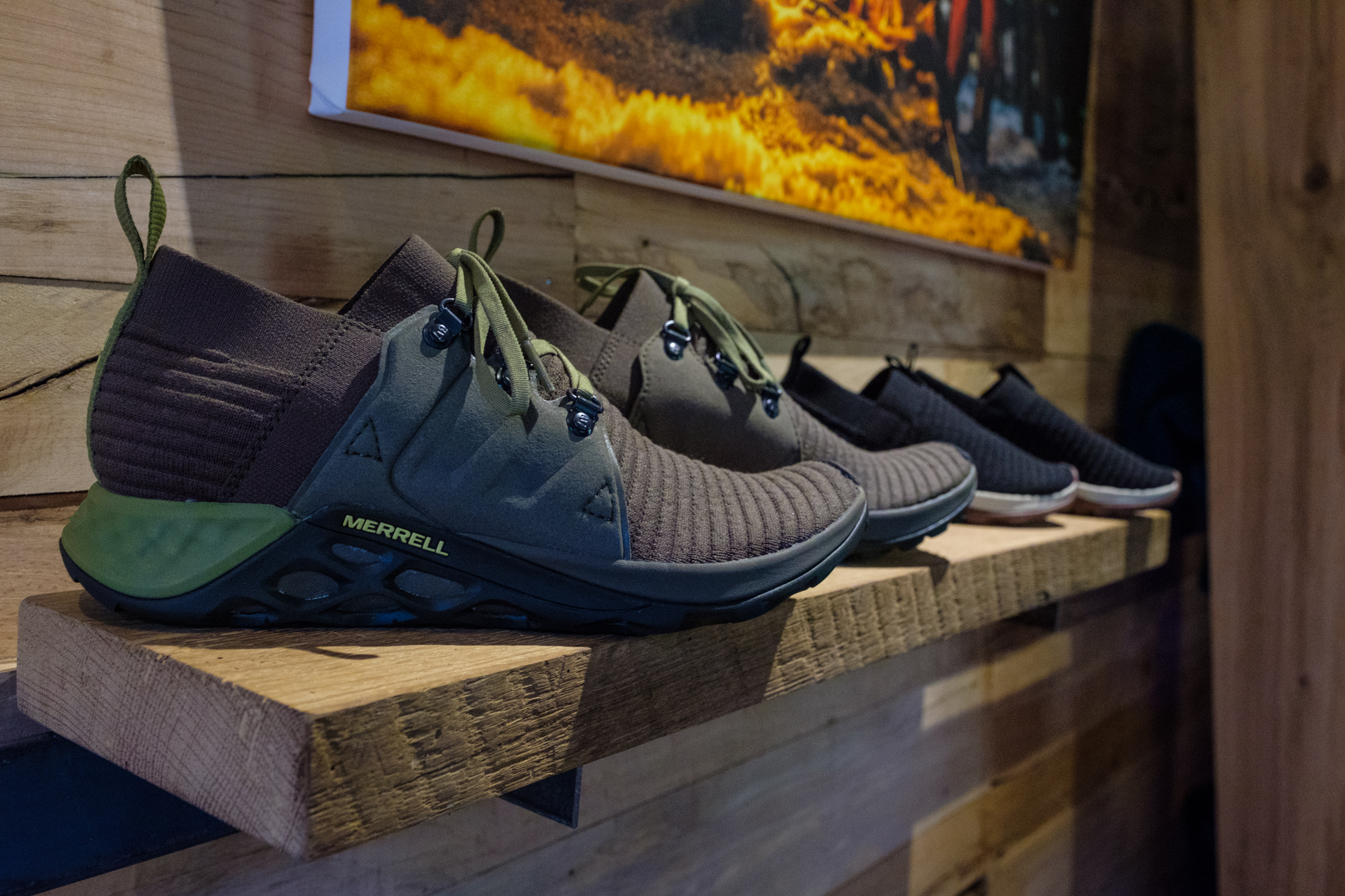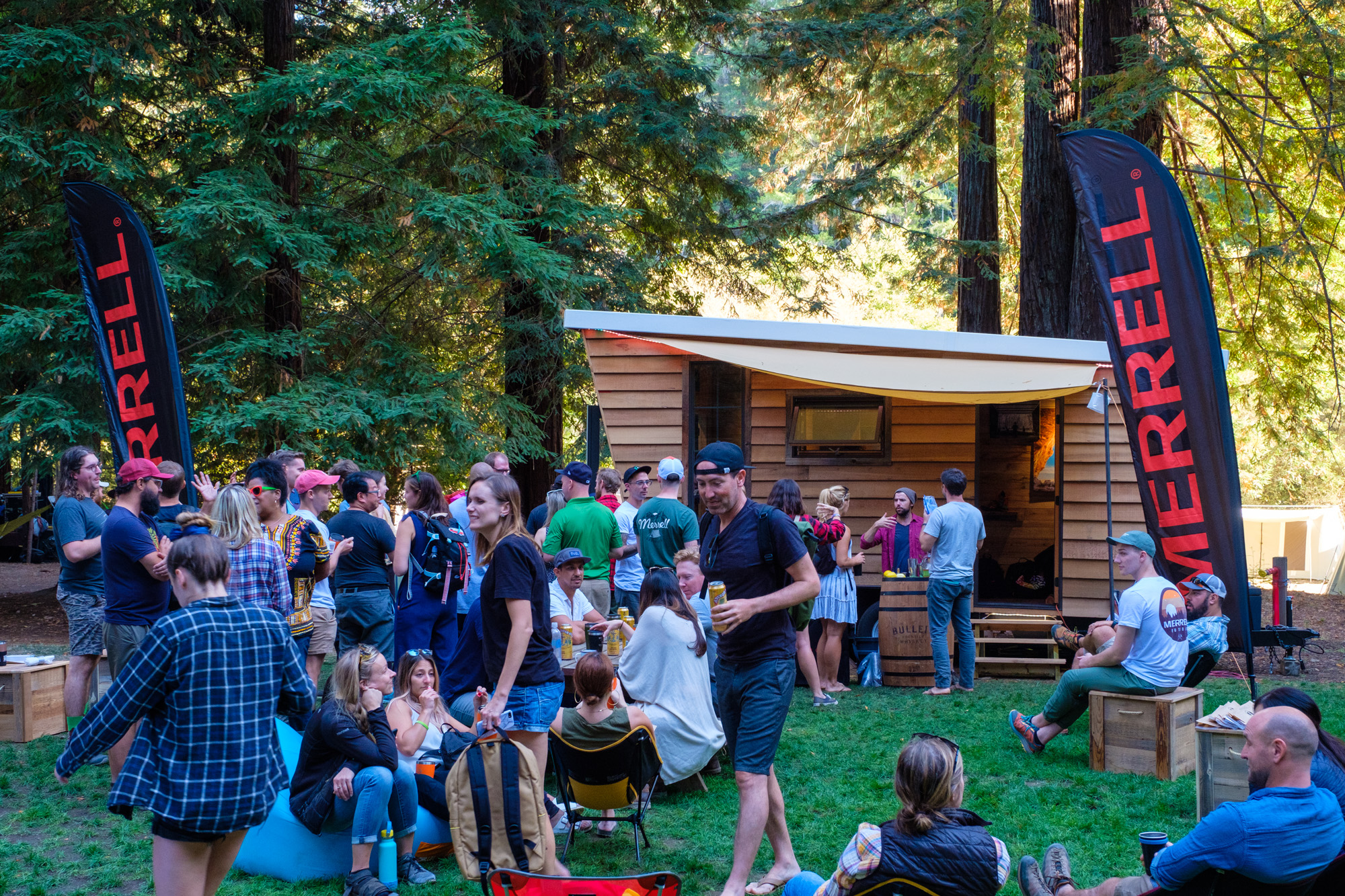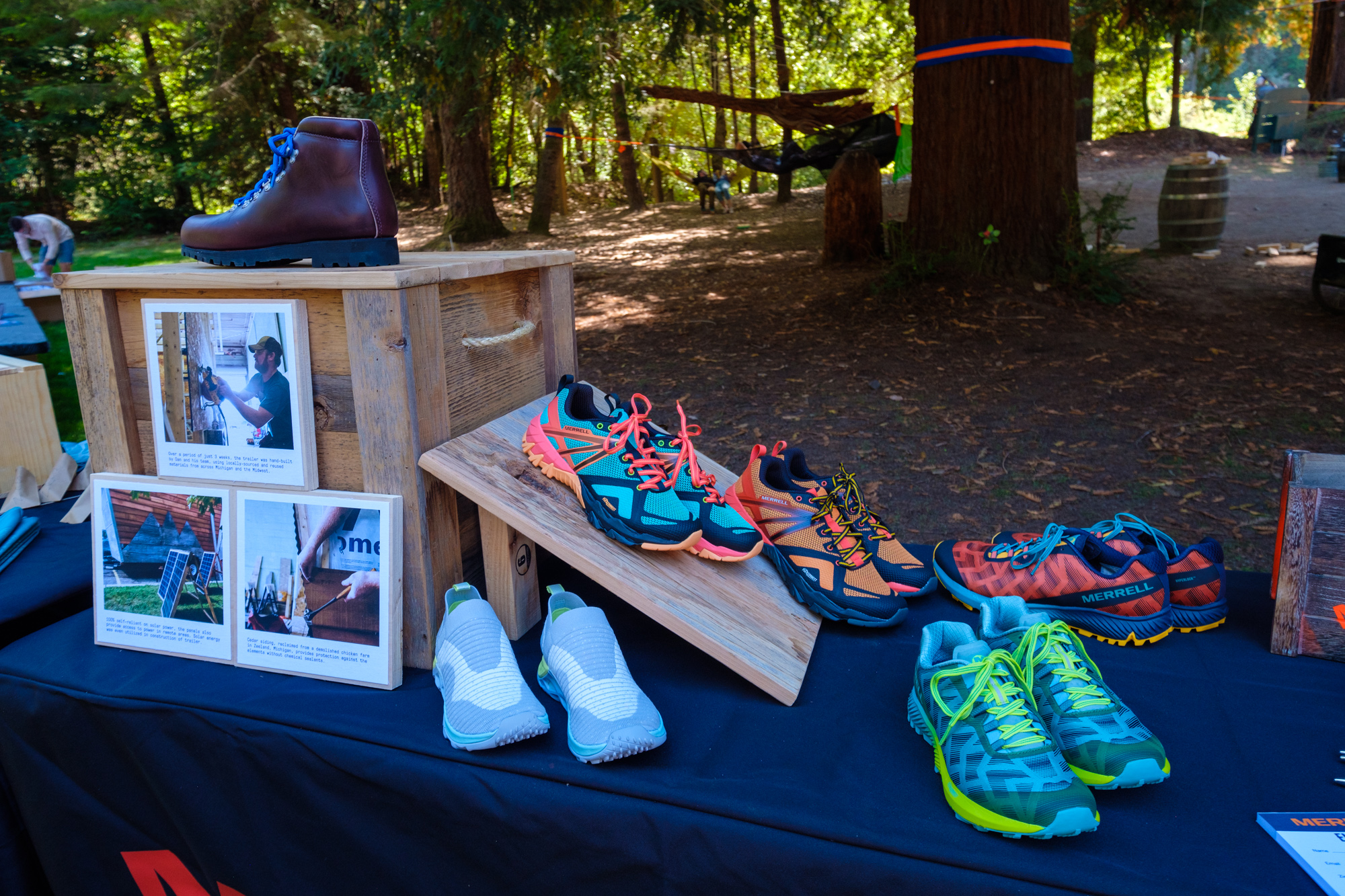 Just across the lawn we ran into the folks from Merrell in their new tiny-home-style booth built from reclaimed materials. To be honest, it would have been hard to miss them, partly because the booth was so cool, but mostly because it was always a hub of activity. Trail runs, new shoe displays, and one heck of a happy hour kept people flowing in and around the trailer all weekend long. In fact, I’d say the only place more comfortable to hang out was in their shoes.