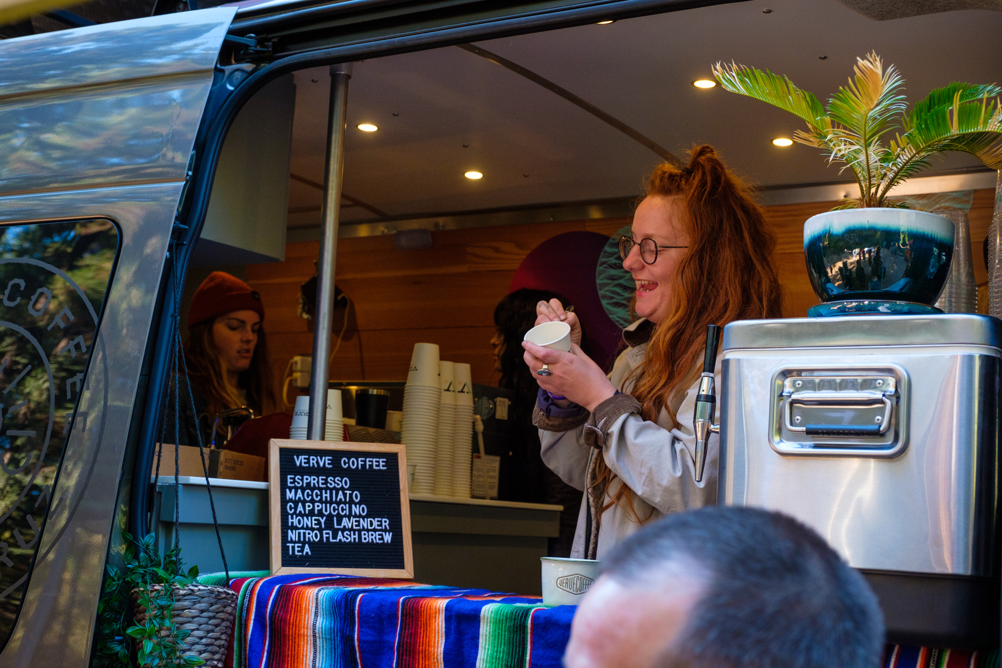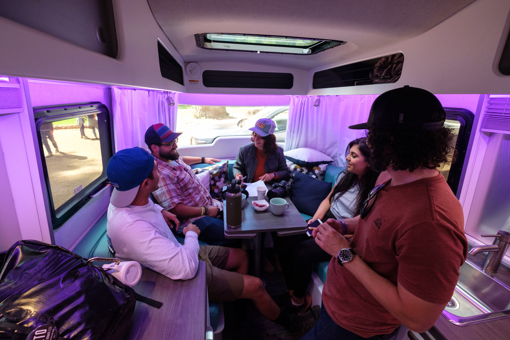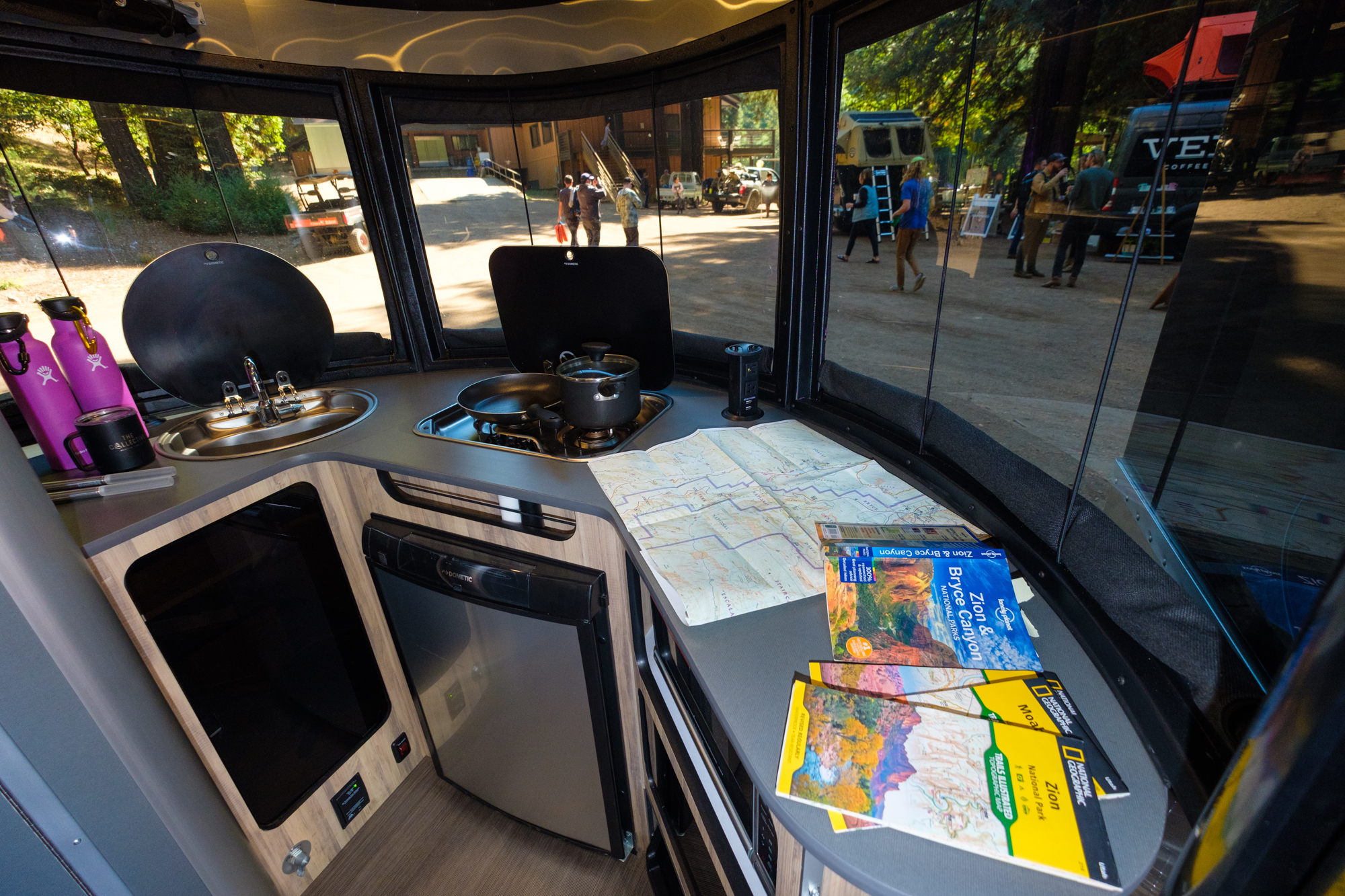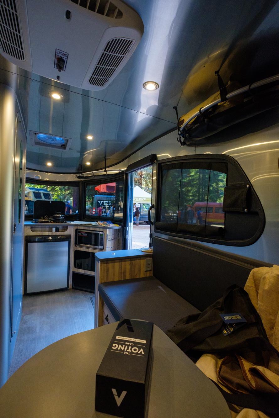 Unsurprisingly, their neighbors at Verve Coffee and Revive Kombucha shared their popularity. In the mornings, crowds would groggily flow towards the Verve Sprinter for lattes or cappuccinos, then move on to the ice cold kombucha next door as the afternoon’s heat set in. While they waited, there was plenty of time to check out the three gleaming Airstream trailers on display across the road. The first was a Basecamp, a compact and lightweight single-axle unit designed to support your adventures and keep you comfortable at the same time. The one seen here is a standard model, but they now have a lifted variant with larger all-terrain tires called the Basecamp X, which you can read about here. Next to that they parked a Nest, a seriously space efficient and comfortable trailer, and on the end their flagship, an absolutely stunning 27-foot Globetrotter. After touring each, I had a hard time not hooking up the Nissan Titan parked nearby and making a run for it.