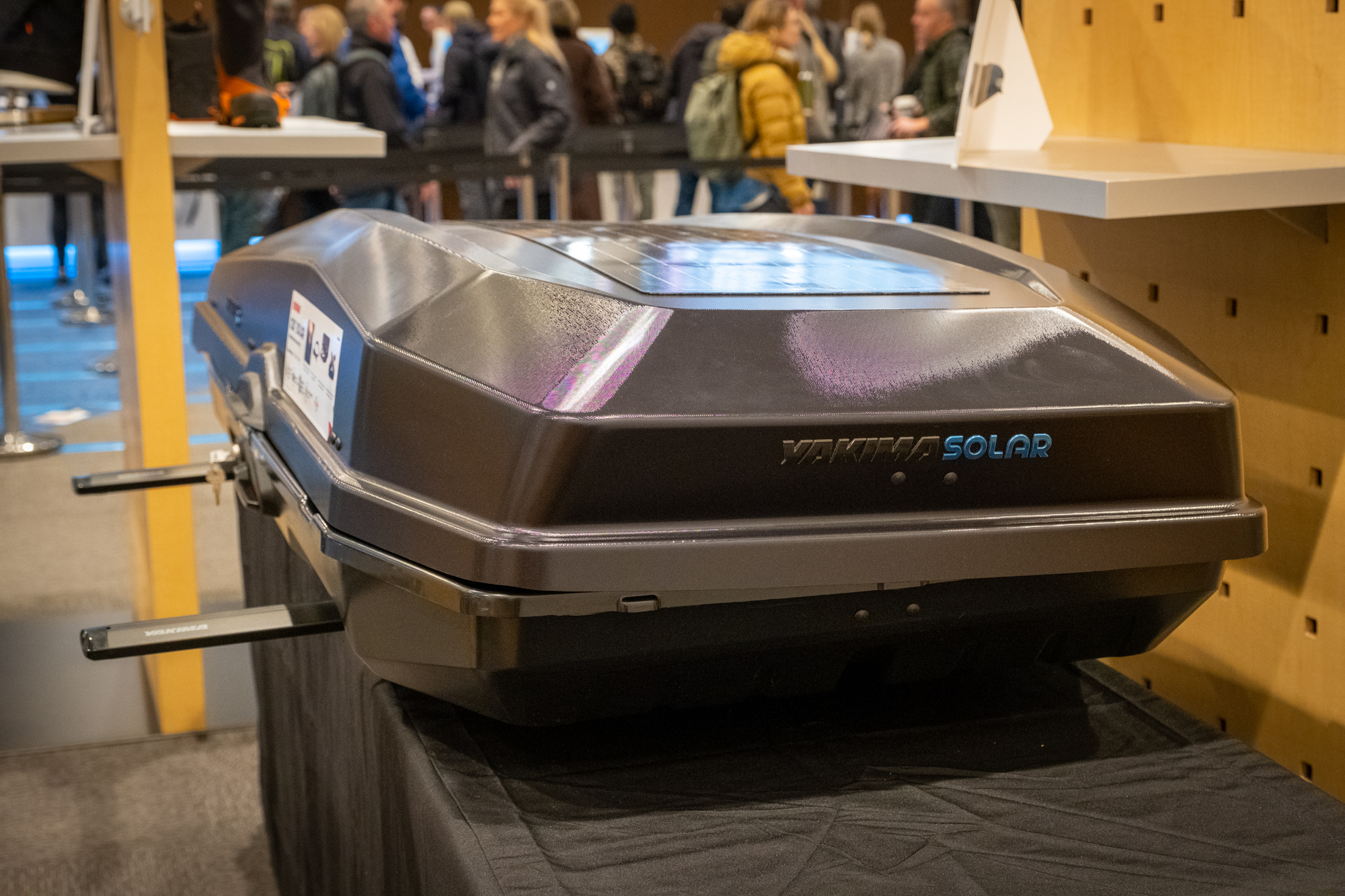 If we could only take home one product from Outdoor Retailer, it would have to be Yakima’s CBX Solar box. This sleek roof-box has a 36W Sunflare panel integrated directly into the lid, enabling users to charge phones, tablets, or other devices via a USB outlet inside the box. At the show, it was displayed charging a Goal Zero Yeti 200, which could be left in the box during the day, and grabbed at night to charge electronics in the tent.