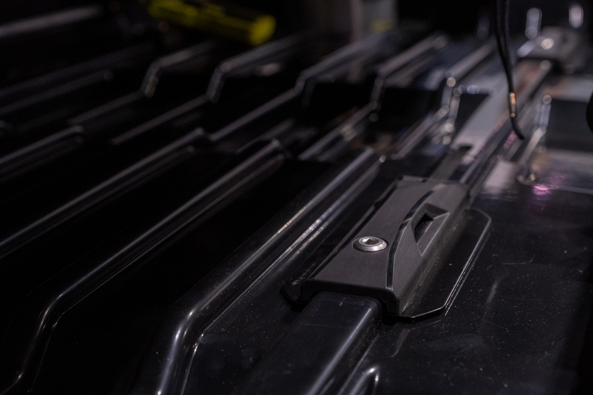 The interior has 16-cubic feet of cargo space and features a slick low-profile mounting system that eliminates the annoying handles that usually take up room at the bottom of the box. Each mount can be turned with a removable Yakima handle, or with a standard 3/4 drive should you ever lose the Yakima handle. These mounts are even torque-specific, so when they reach the ideal torque setting they click instead of tightening further. The finishing touch on this roof-top masterpiece are roof-rail cut outs so that the box sits nearly flush on the rack for a clean look.