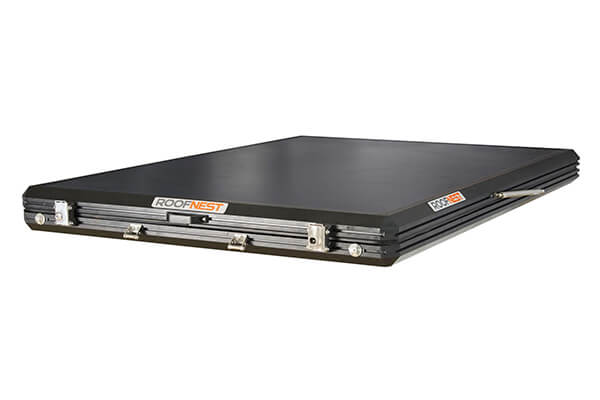 An 8.5-inch telescoping ladder is included with a heavy-duty storage bag and can be attached to the edge of the Roofnest for additional safety.