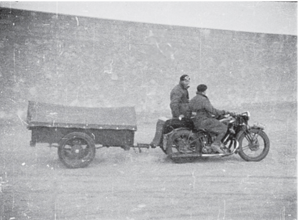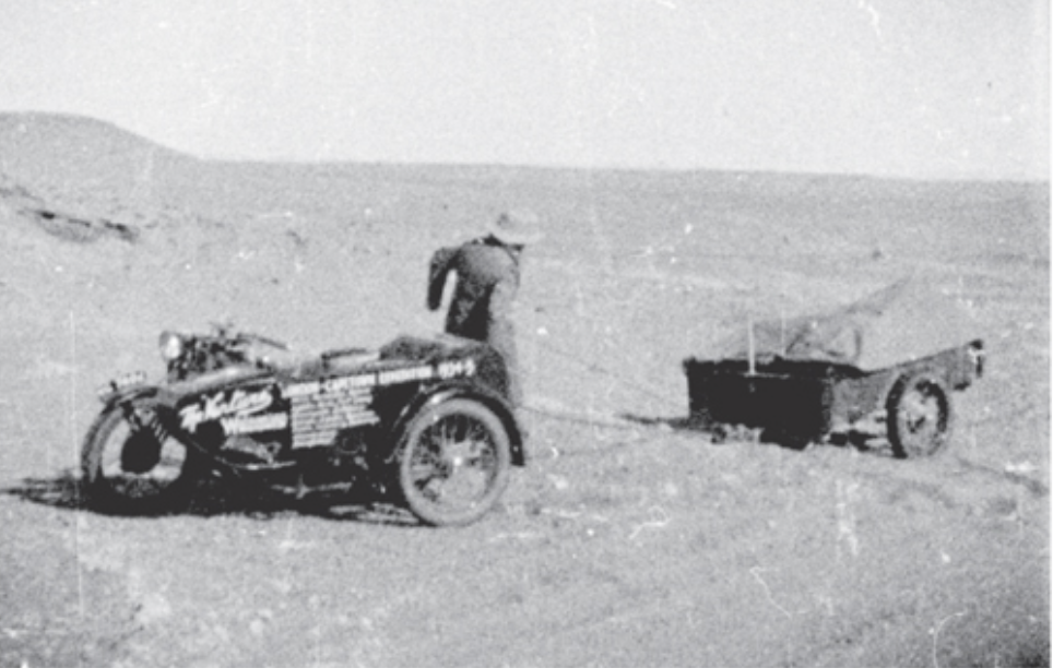 “What will you do,” the French Foreign Legion Captain asked, “if the Hoggar Massif drifts engulf you?” It was the second of January, and Wallach and Blenkiron required the captain’s consent to continue to In-Salah, 250 miles away. When their 600cc single-cylinder Panther motorcycle became stuck in the sand, they explained to the captain, they used the trailer as an anchor to pull it out. “If the worst comes to the worst,” Wallach insisted, “we would abandon the trailer and load only fuel, water, and food into the sidecar.” The pair were determined to be the first to ride to Cape Town, South Africa, with a sidecar and trailer.