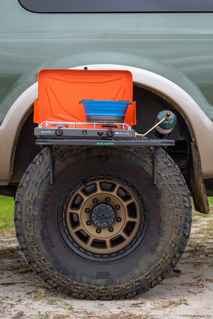 The welded structure is also far better suited for supporting heavy objects like cases of soda, recovery gear, or tool rolls without bending or becoming unbalanced. While I’ve often found my lightweight folding table will bow under even a battery pack and my laptop, the Tire Table has easily stood up to the task of holding 5-gallon and even 10-gallon water cans, making it perfect for anything from washing dishes to filling bottles.