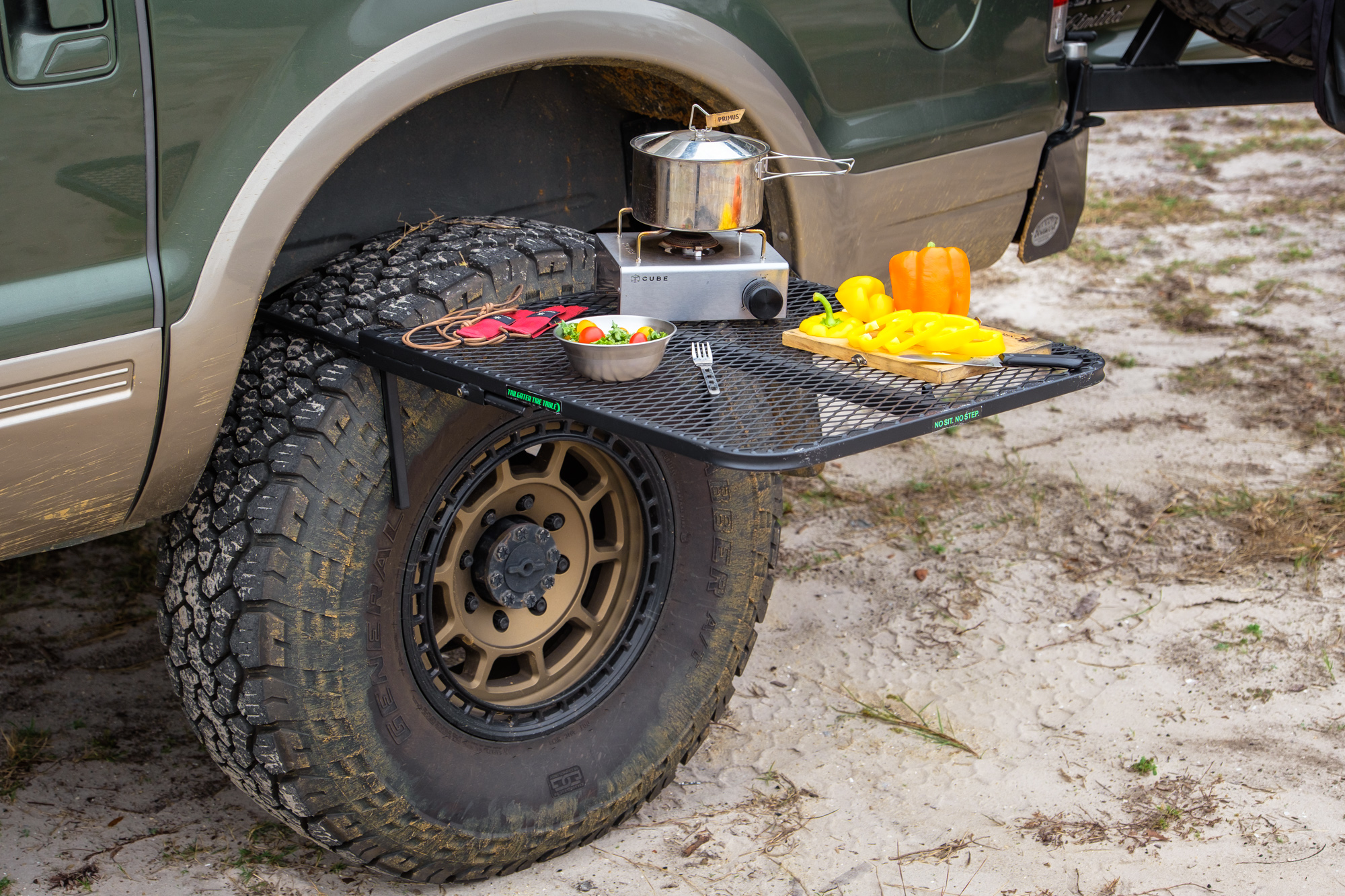 One of the fun things about reviewing outdoor gear is that you never know when a product is going to surprise you. Something that seems like a good idea may actually wind up falling short in testing, while a product you weren’t sure you’d like becomes one of your favorite pieces of kit; the Tailgater Tire Table is a perfect example of the latter. While it may have seemed bulky and a tad limiting offhand, it has now found a permanent home in my Excursion. So, here is a look at the reasons the Tailgater won me over, and the places where it still falls short.