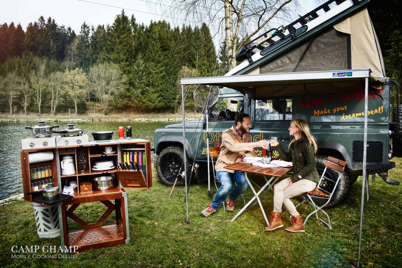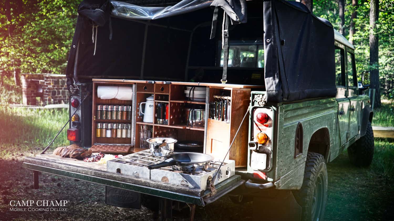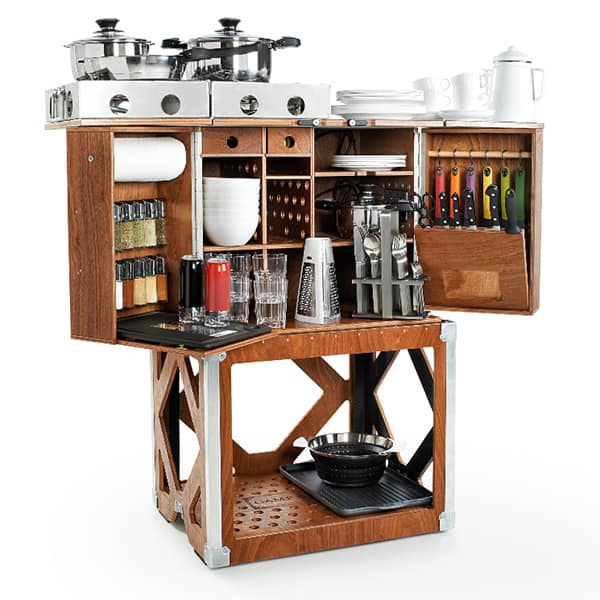 You’ve just pulled up to a lakeside retreat in your built-out Land Rover, and decided to prepare a gourmet dinner for two. You wouldn’t be caught dead using plastic storage bins or cheap cookware, would you? Of course not. Only the finest culinary equipment will do, so you’ll pull out your Austrian-designed, hand-built, Camp Champ kitchen. It’s packed with everything you’ll need to prepare a meal for six, from basics like the stove and cutlery to dessert plates and a whetstone. To learn more, check it out on their website here.